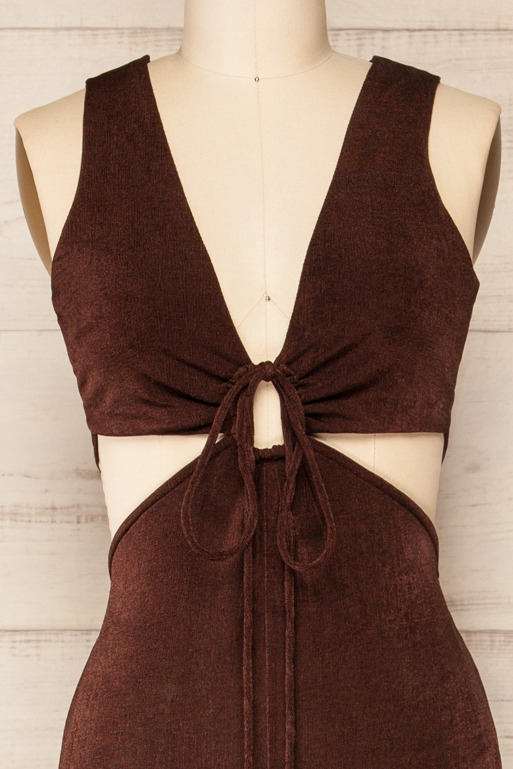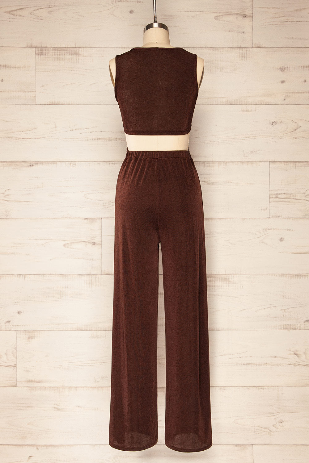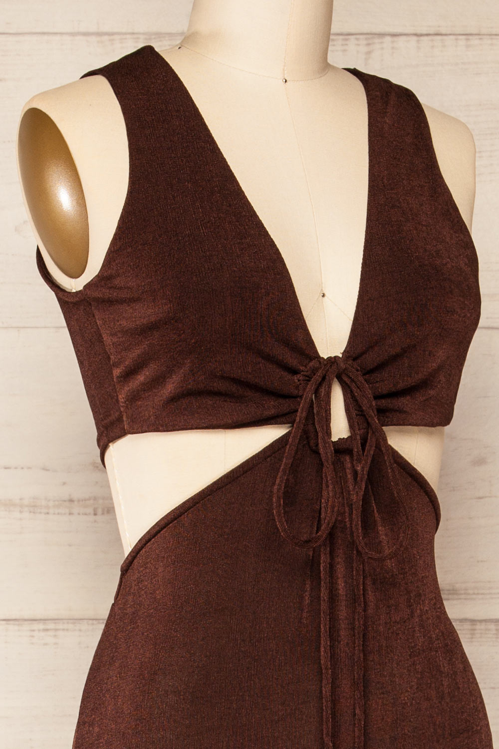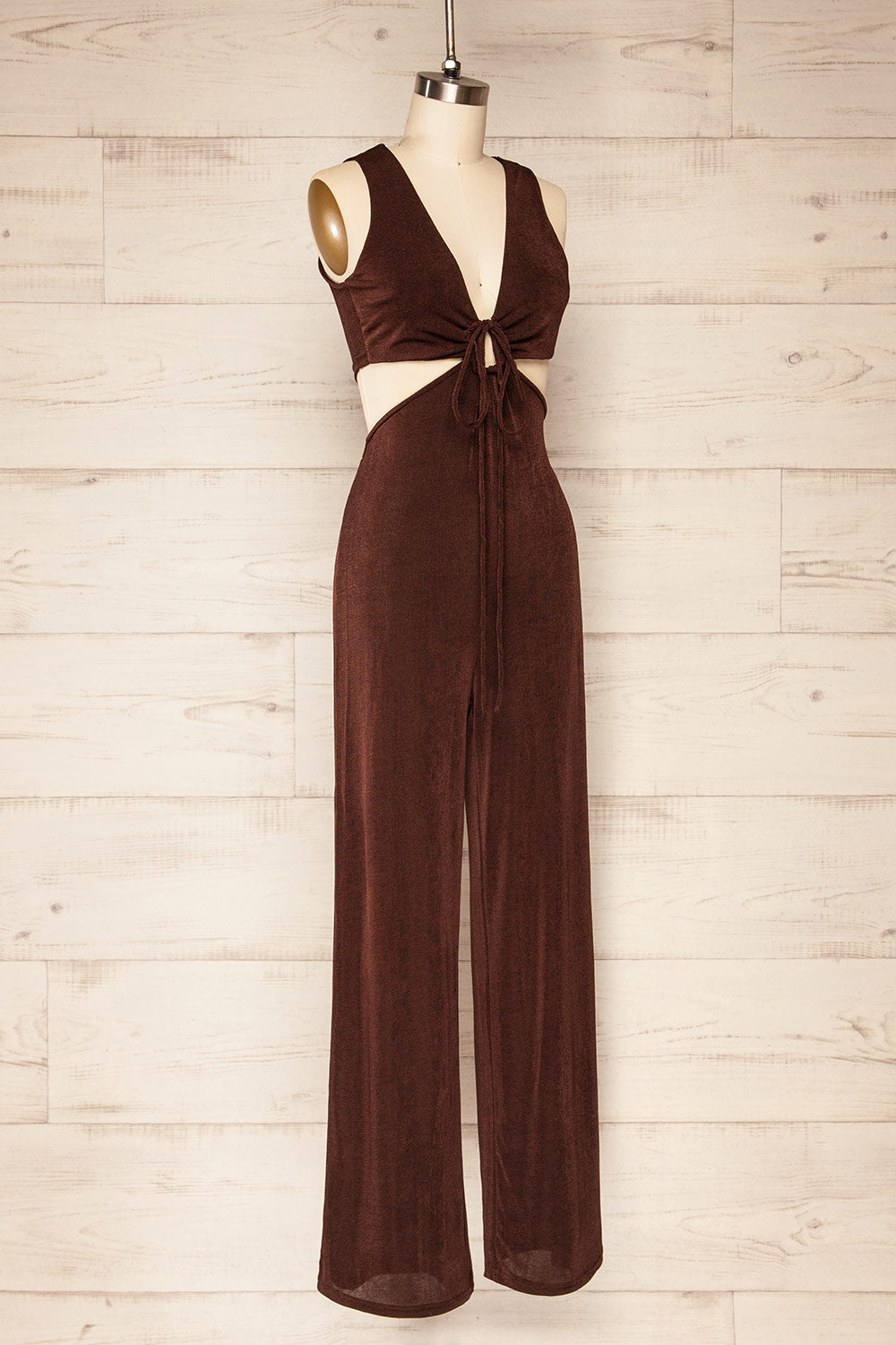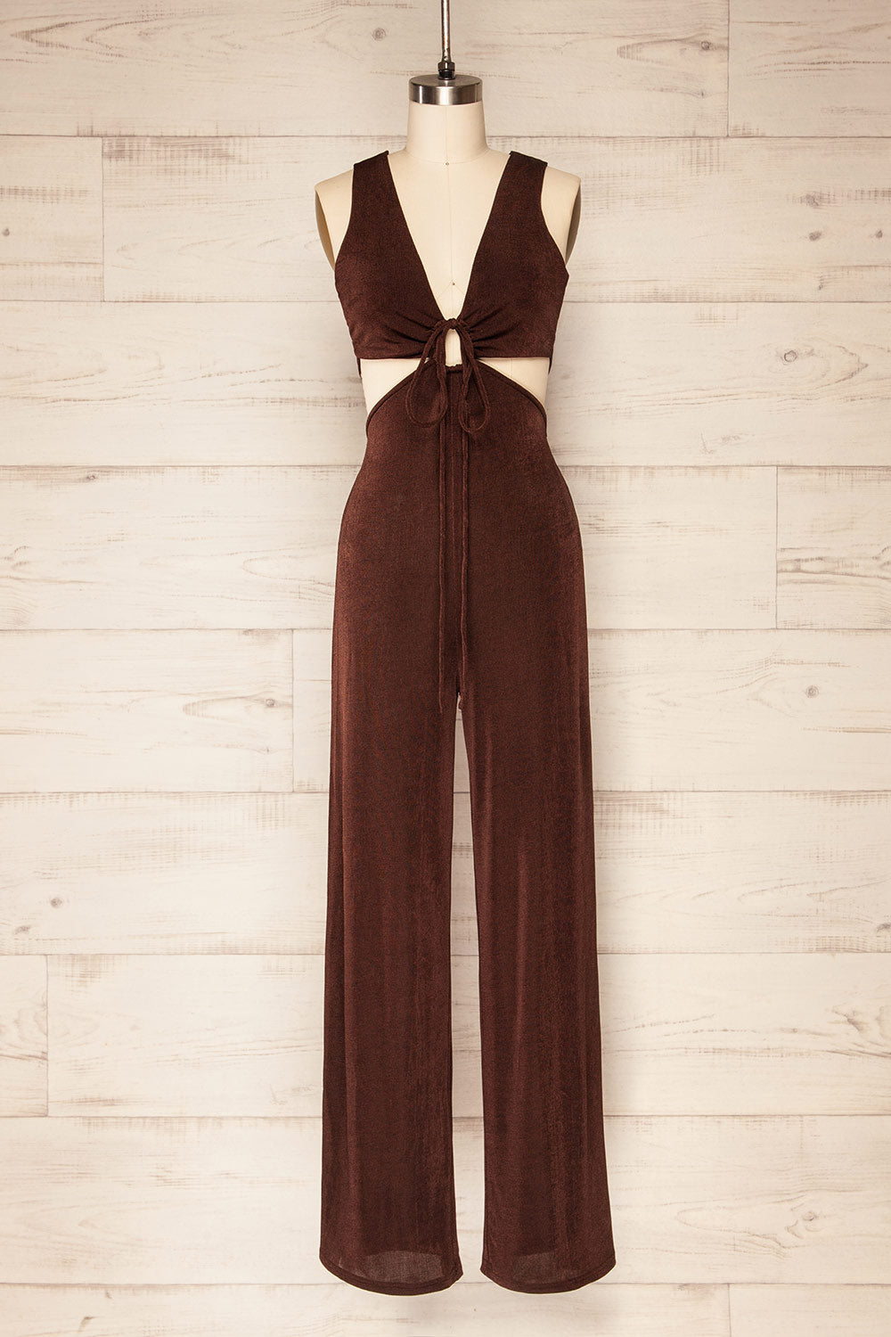 Lalali Brown | Shimmery Jumpsuit w/ Deep V-Neckline