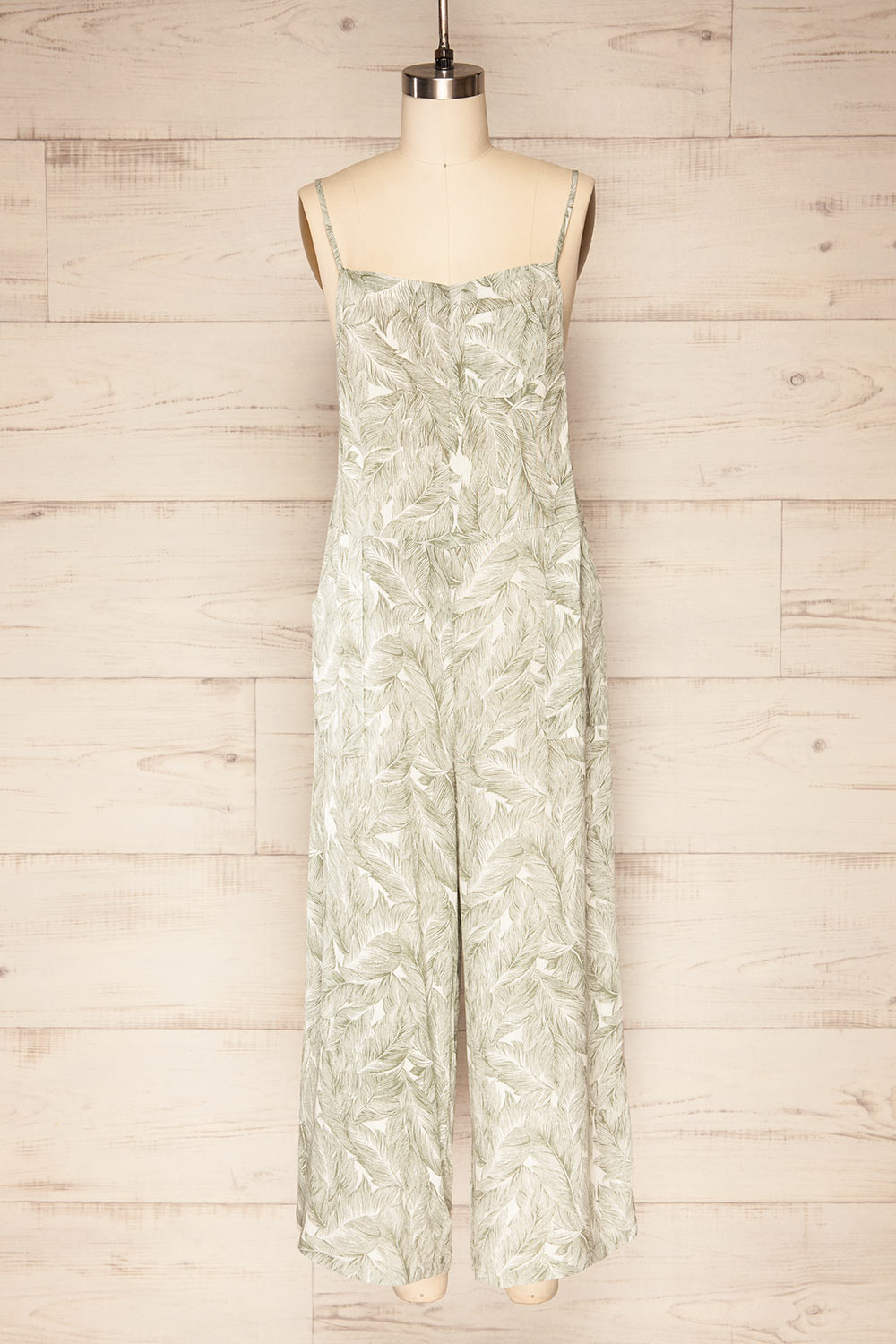Leyde Olive | Sleeveless Wide Leg Overalls