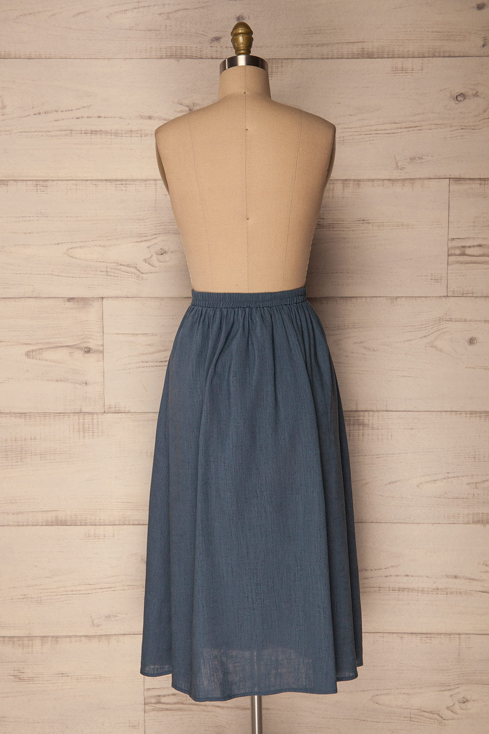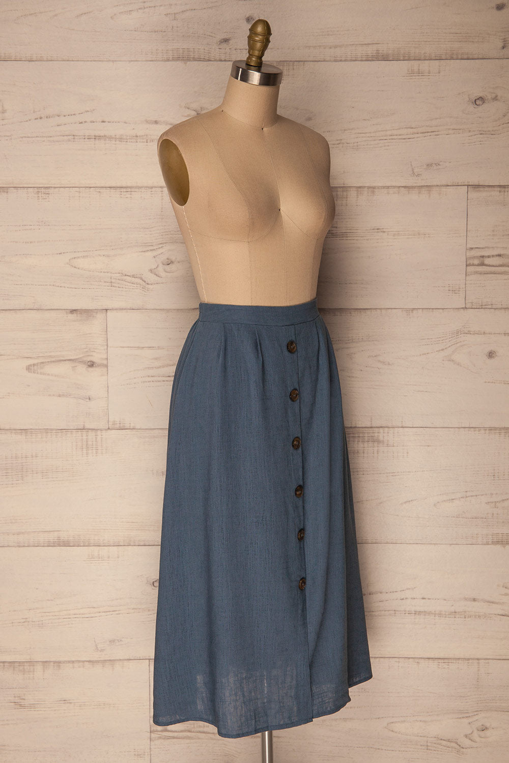 This skirt will let you explore a rustic, yet elegant style! Its A-line cut will be flattering and its stretch waist will prove practical. The decorative buttons down the front are a trendy element; the perfect final touch to the piece.