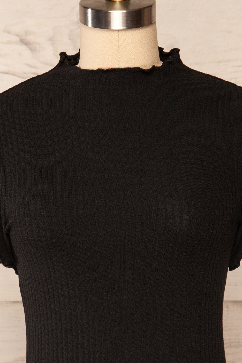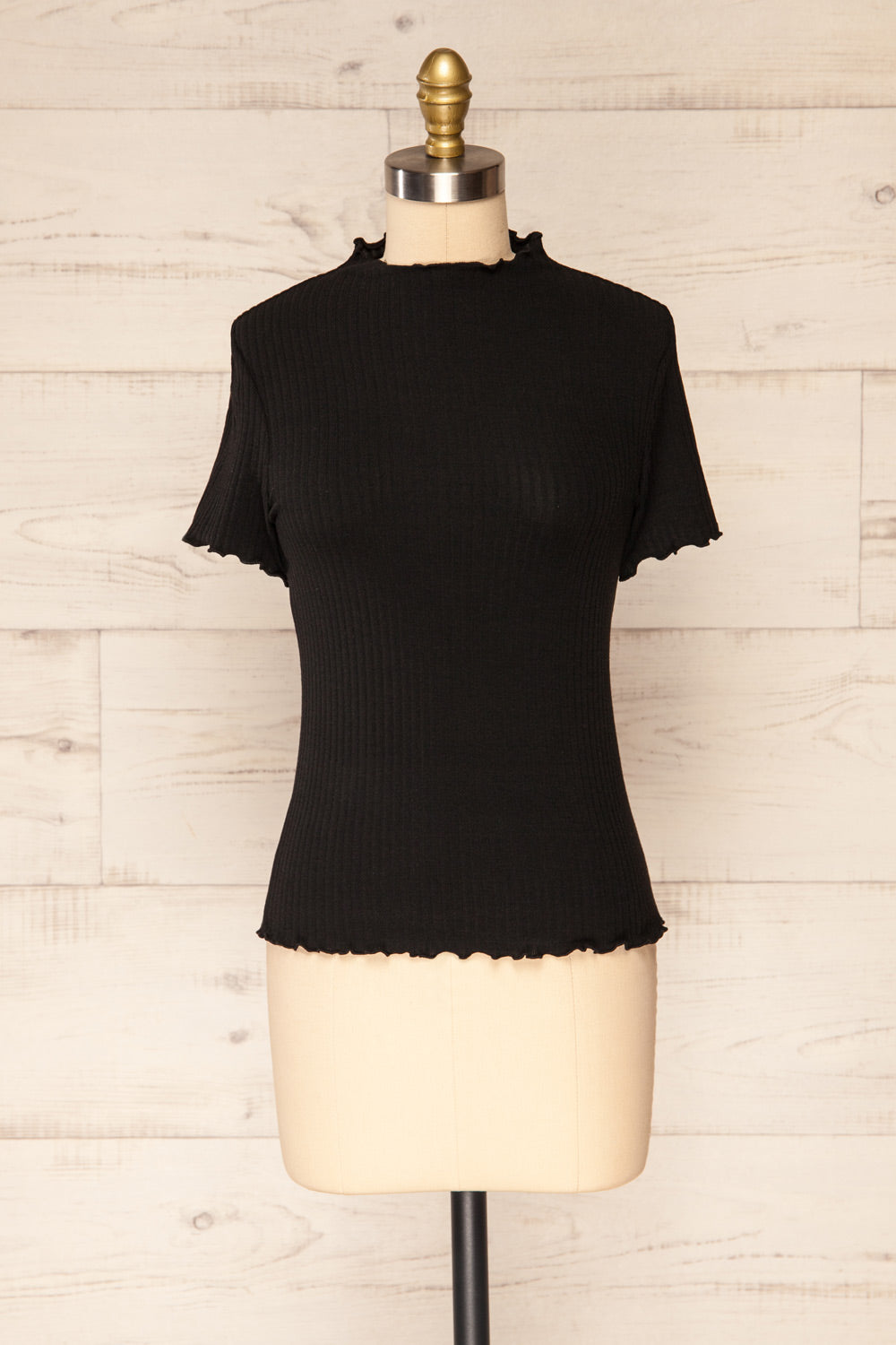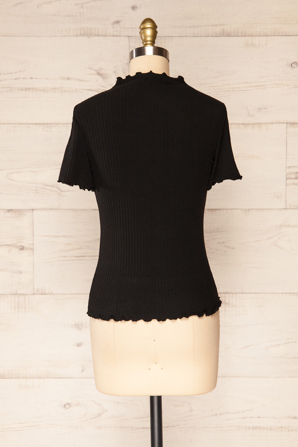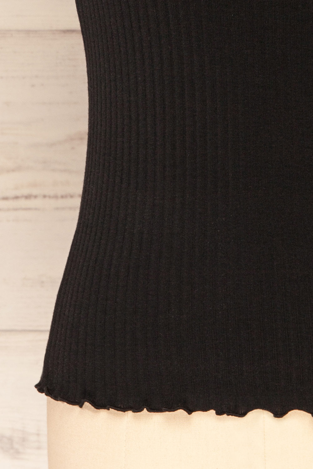 Loula Black | Ribbed Frill-Trimmed Top