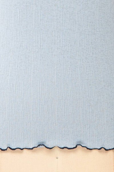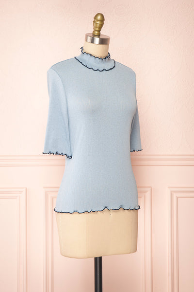 Lynne Blue | Short Sleeve Ribbed Top w/ Frills