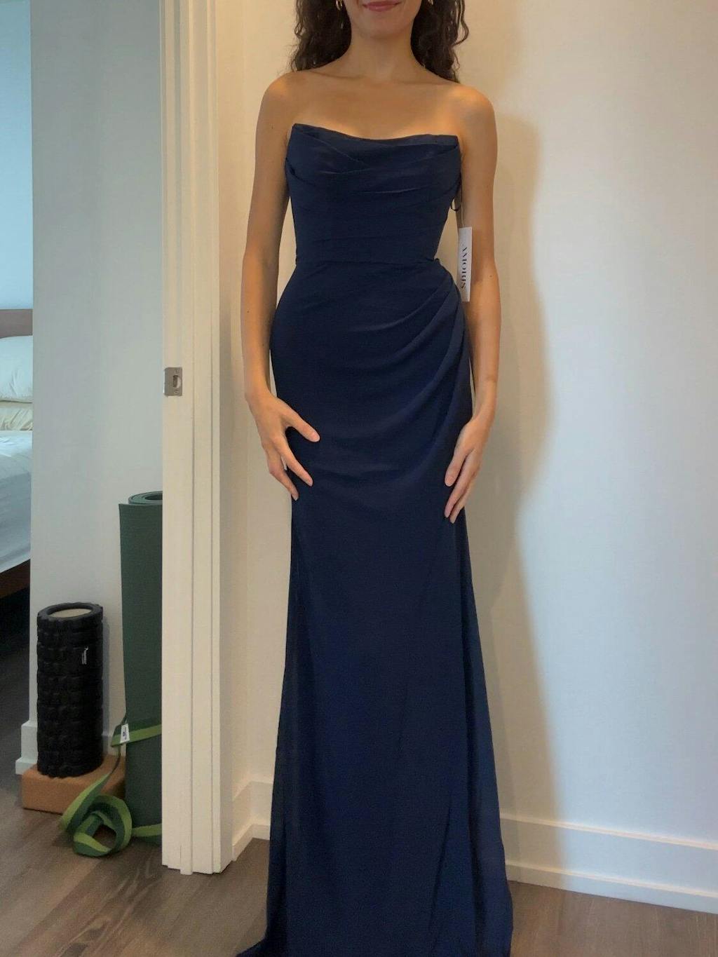 Marylin Navy | Mermaid Draped Chiffon Dress