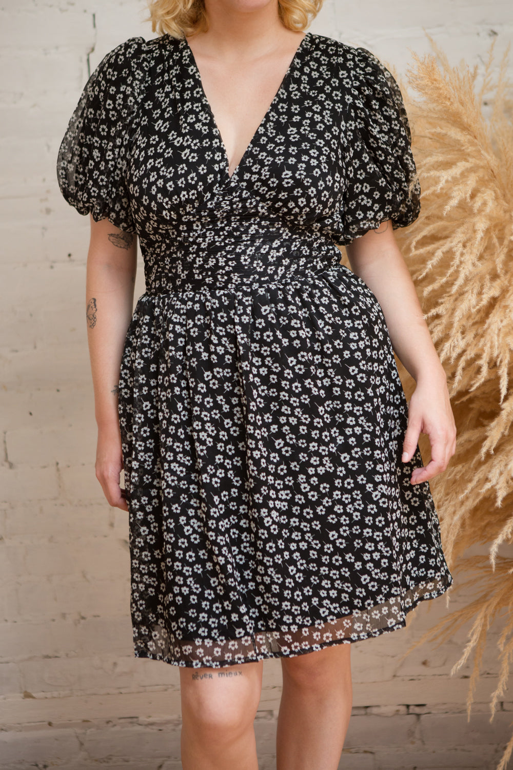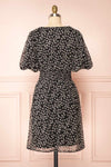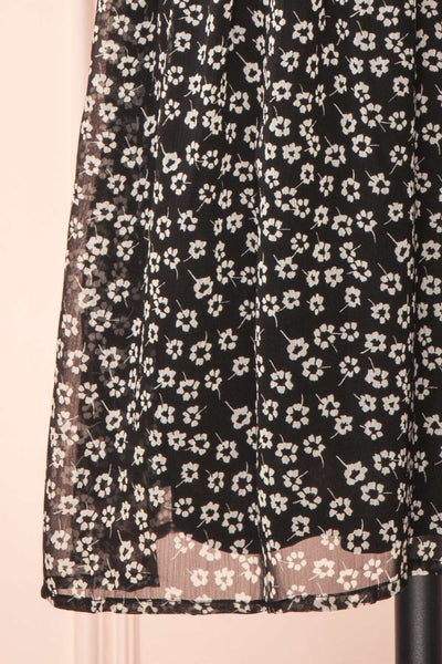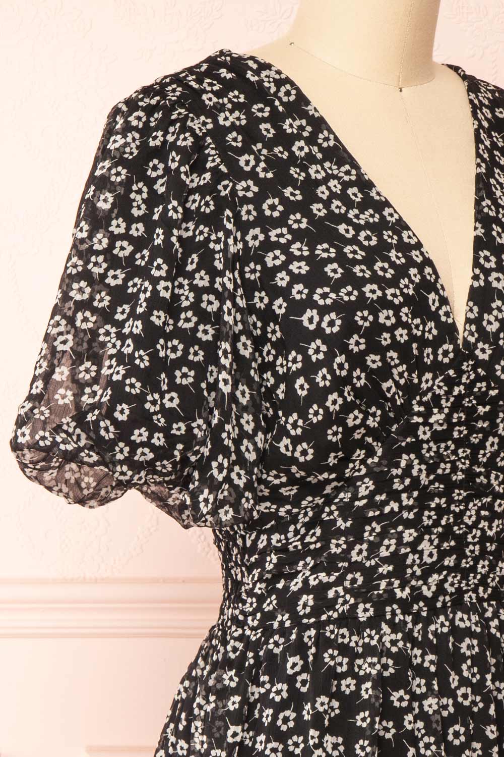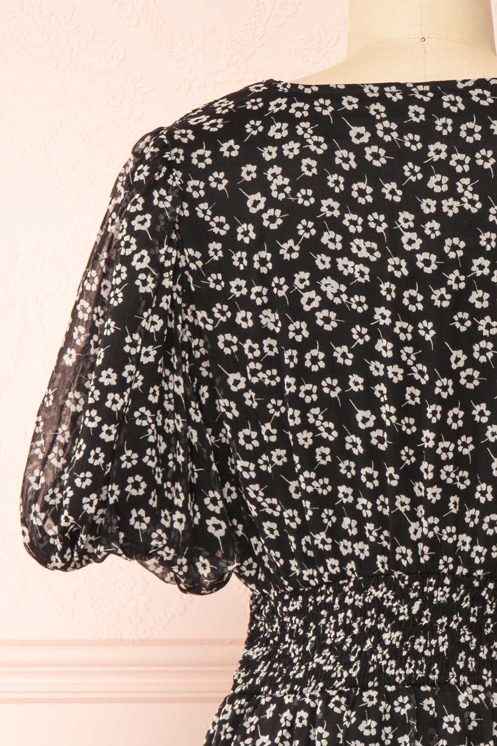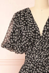 Mogontia | Black Chiffon V-Neck Floral Short Dress
