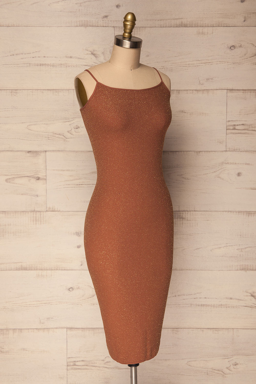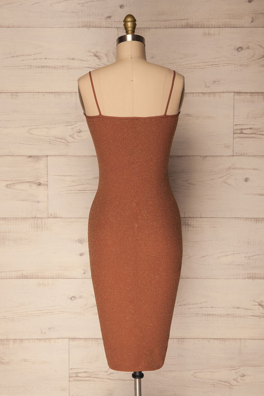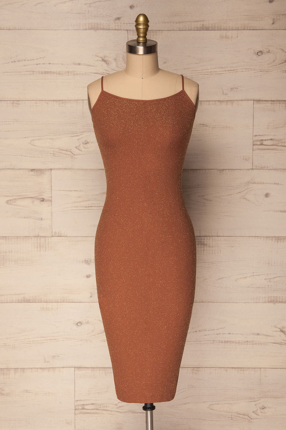 Everyone will be captivated by this seductive and glamorous little dress! Its fitted cut made of stretch material will comfortably hug your figure, while its minimalist knee-length style is a classic element. Add golden jewelry that will bring out its shimmering finish!