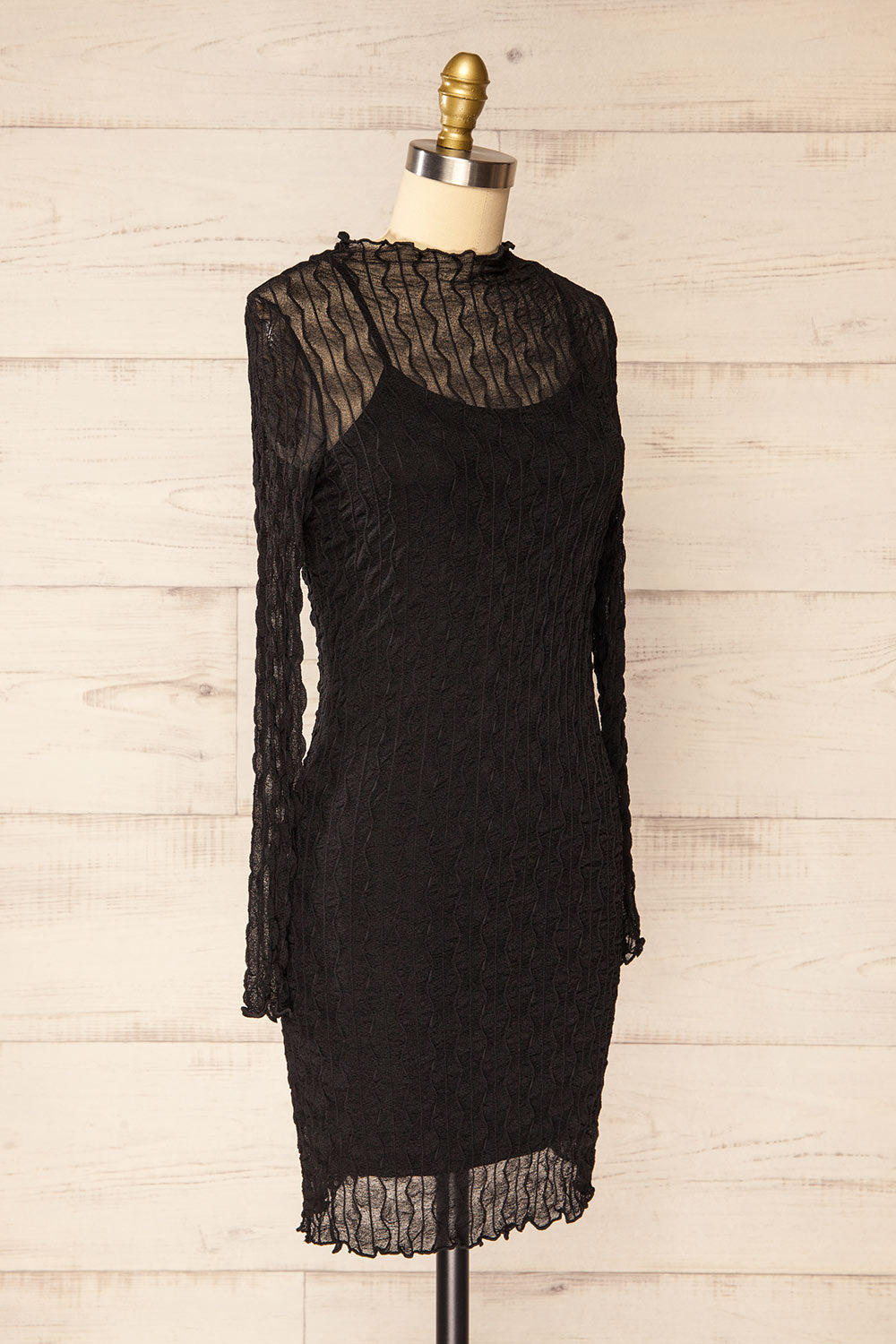 Newcastle | Short Black Mesh Dress w/ Long Sleeves