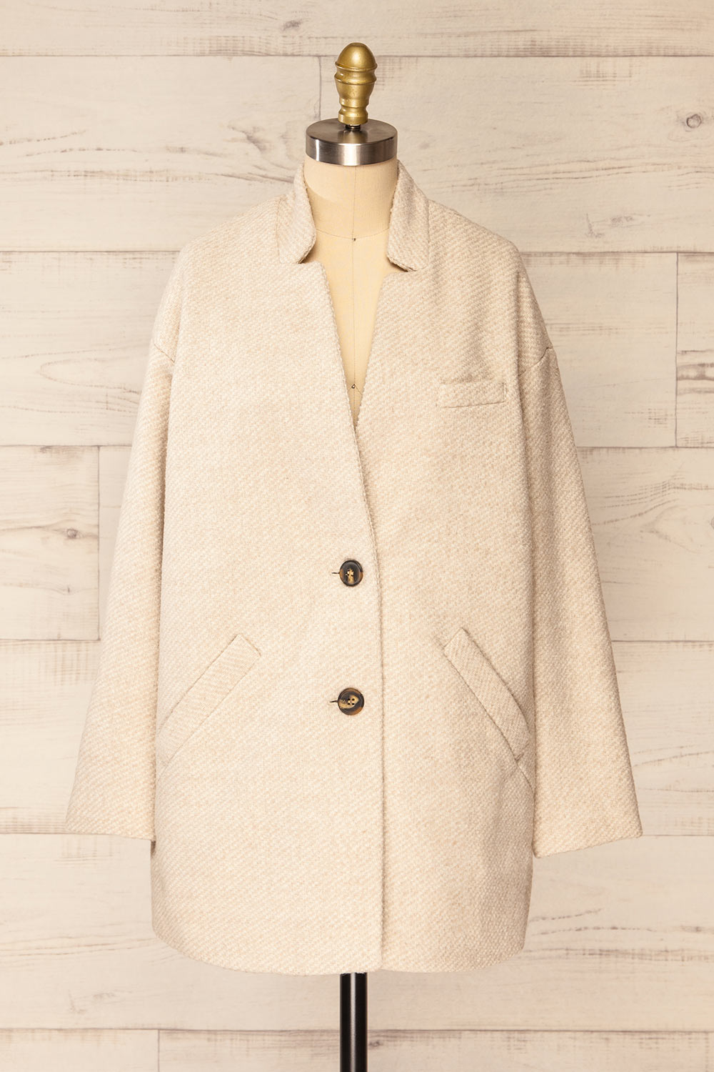 This short felt coat will be your new go-to this fall season! This classic piece will be easy to pair with the rest of your wardrobe thanks to its simple and timeless look. Be sure to use its front pockets to keep your small essentials close.