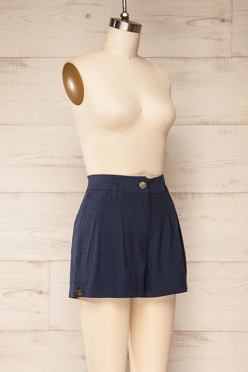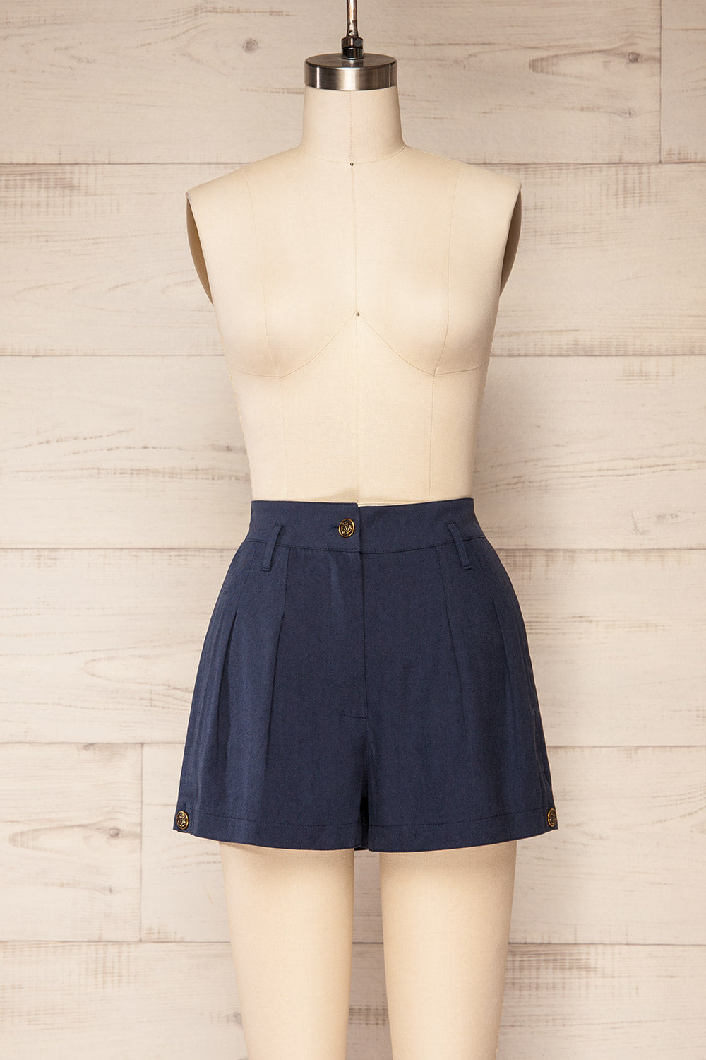 These charming shorts will be your go-to for the hot season! You will appreciate its useful side pockets and belt loops. You'll love the boat anchor details found on the golden buttons! Wear these shorts casually with a tank top or dress them up with your favourite blazer and a pair of loafers!