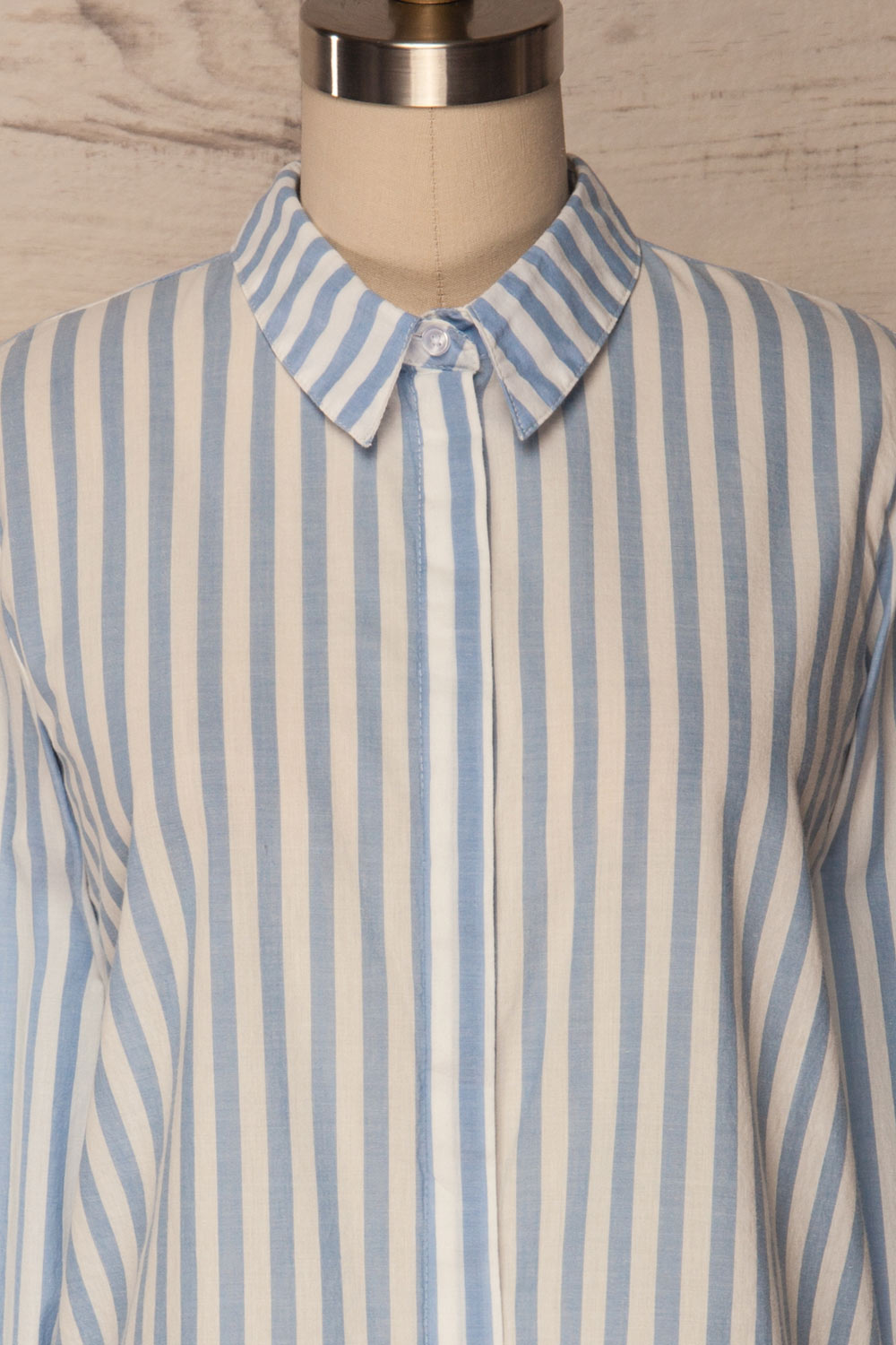 This seemingly simple and classic striped button-up shirt will surprise you with its flirty flavour! The loose and comfortable fit features a pretty little bow and keyhole at the nape of the neck for an effect that is both enchanting and casual.