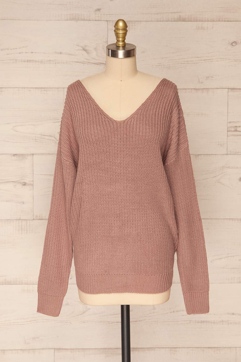 Get ready in style for this fall season with this cozy sweater! Its v-neck and its knotted back will reveal your skin in a charming way while its wide cut and its soft fabric will offer you total comfort. Its versatile look will make it perfect paired with leggings or your favourite pair of jeans.