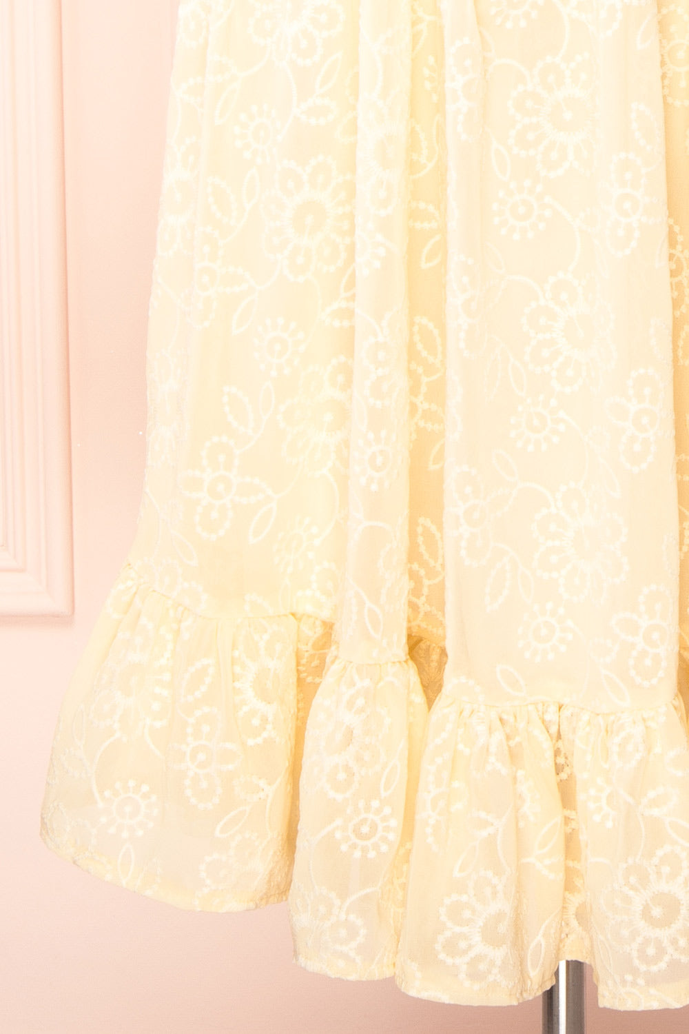 Pepita Beige | Chiffon Midi Dress w/ Floral Embroidery