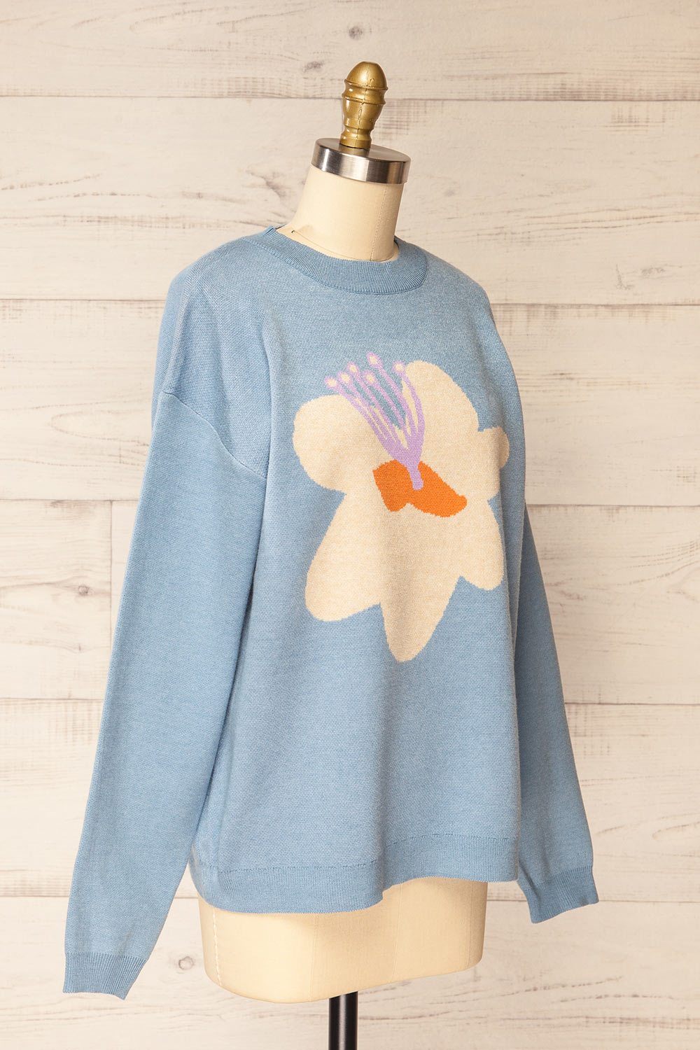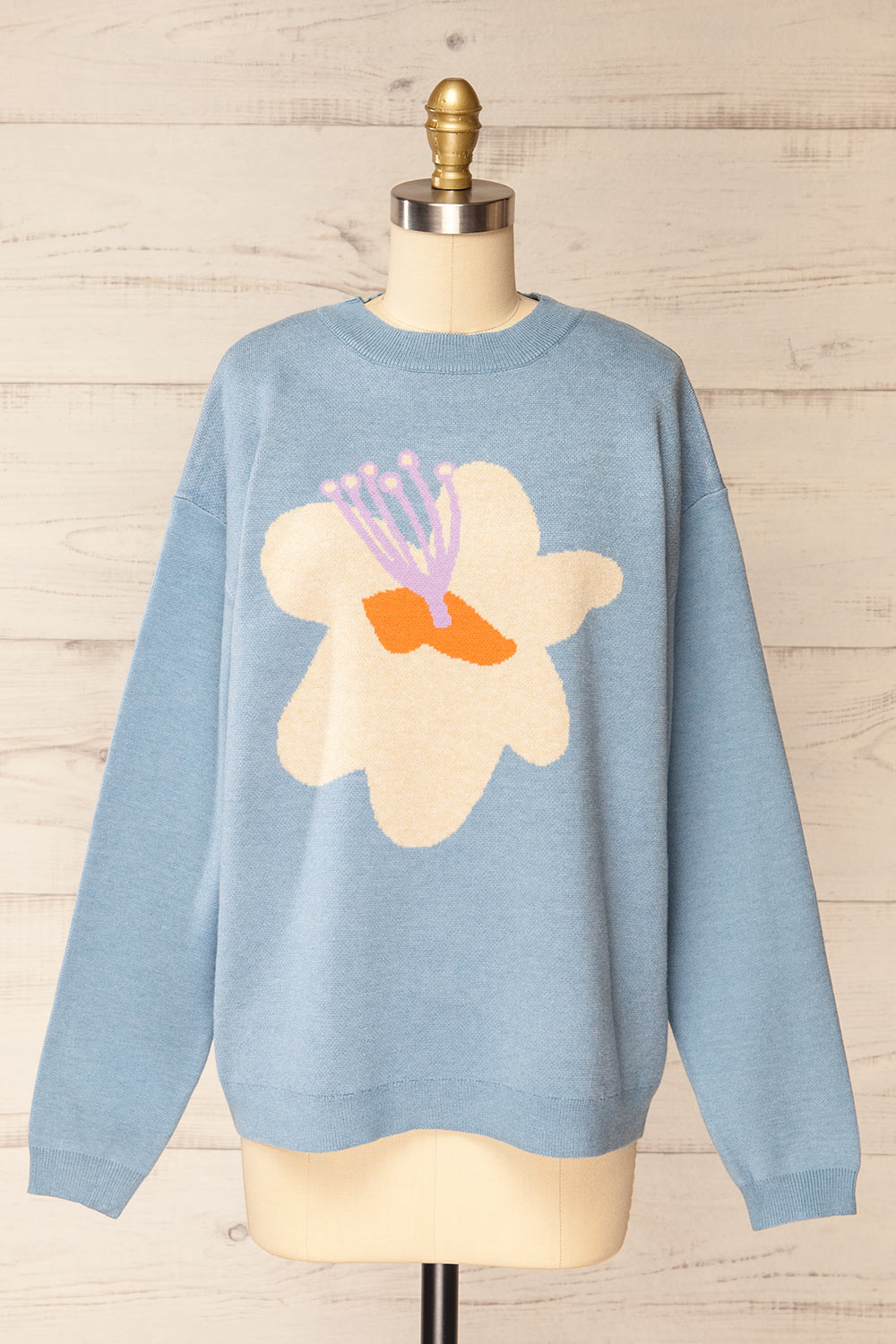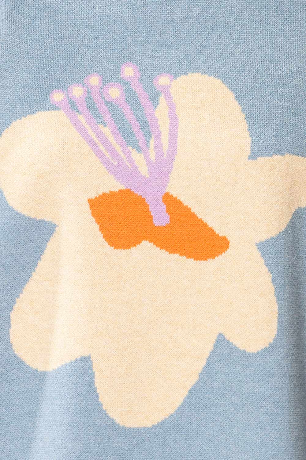 Rambouillet | Blue Knit Crewneck w/ Flower Detail