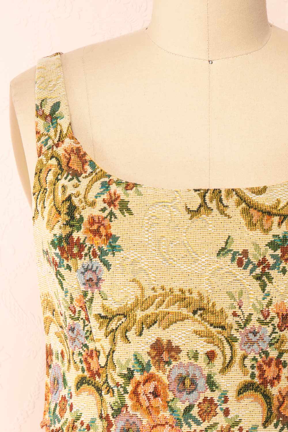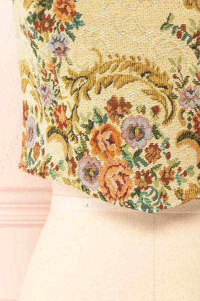 This pretty tapestry cropped top will look amazing with your vintage inspired looks! You will fall in love with its V-hem and bustier cut as it will perfectly hug your body to show off your lovely curves. The back zipper will make this piece easy to throw on. Pair it with PETERBO and PORTNAHAVEN for a coordinated and unique outfit that will make heads turn.