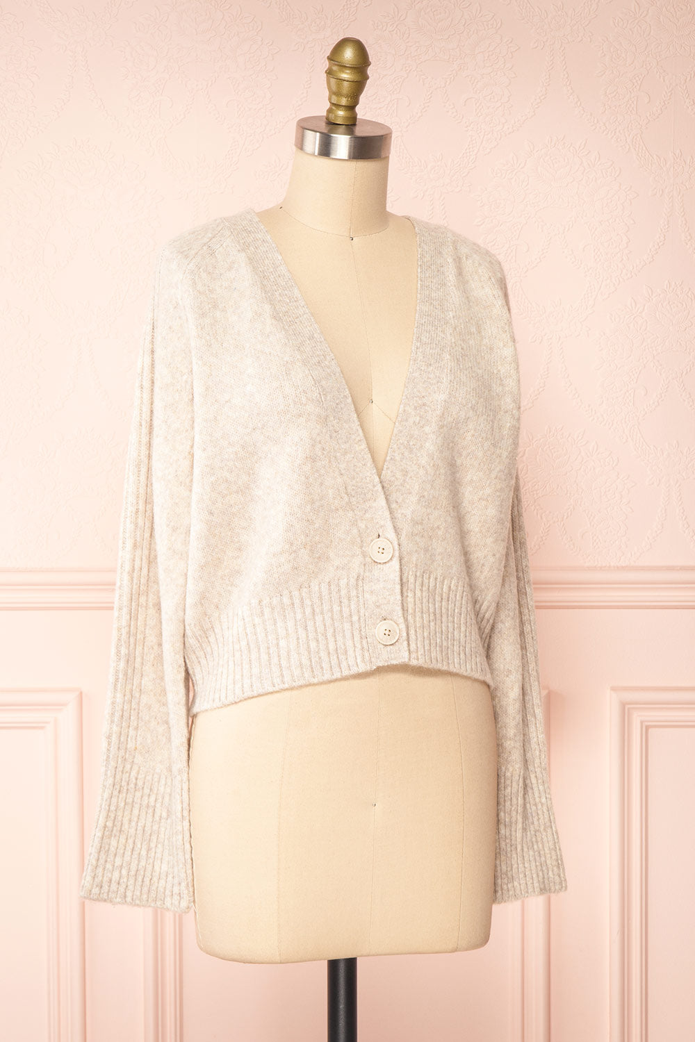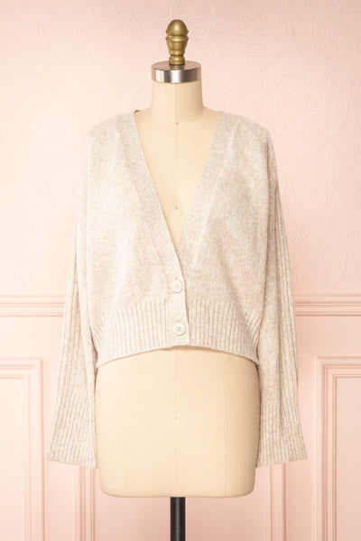 Sansia Beige | Soft V-Neck Cardigan