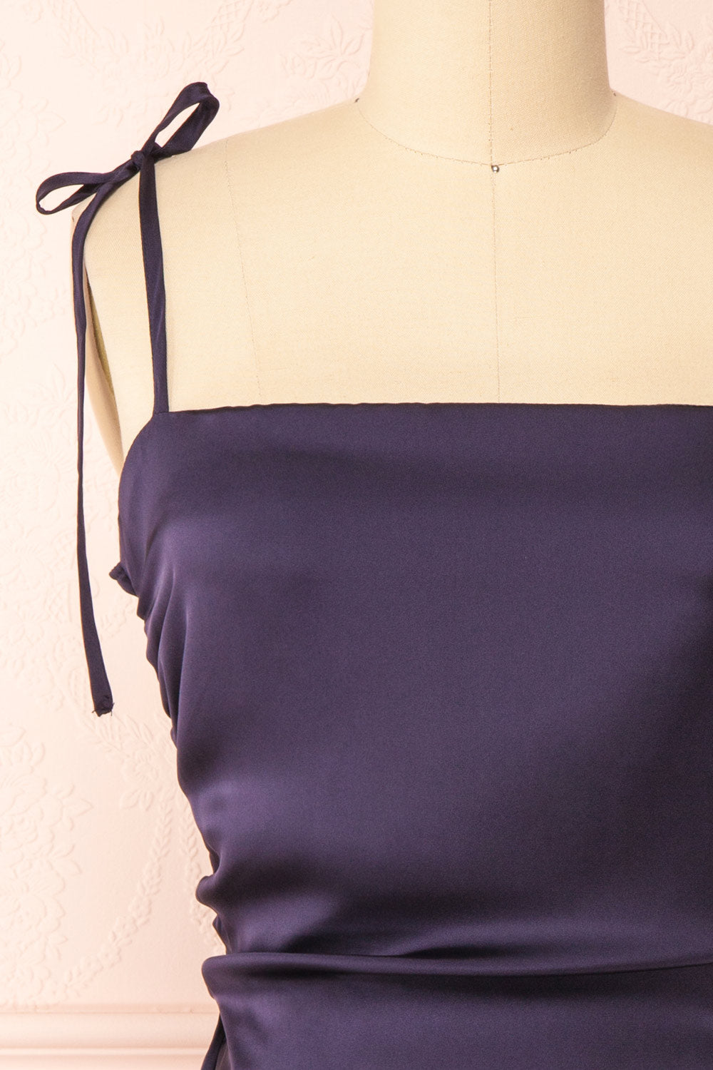 Sarah Navy | Short Satin Dress w/ Tied Straps