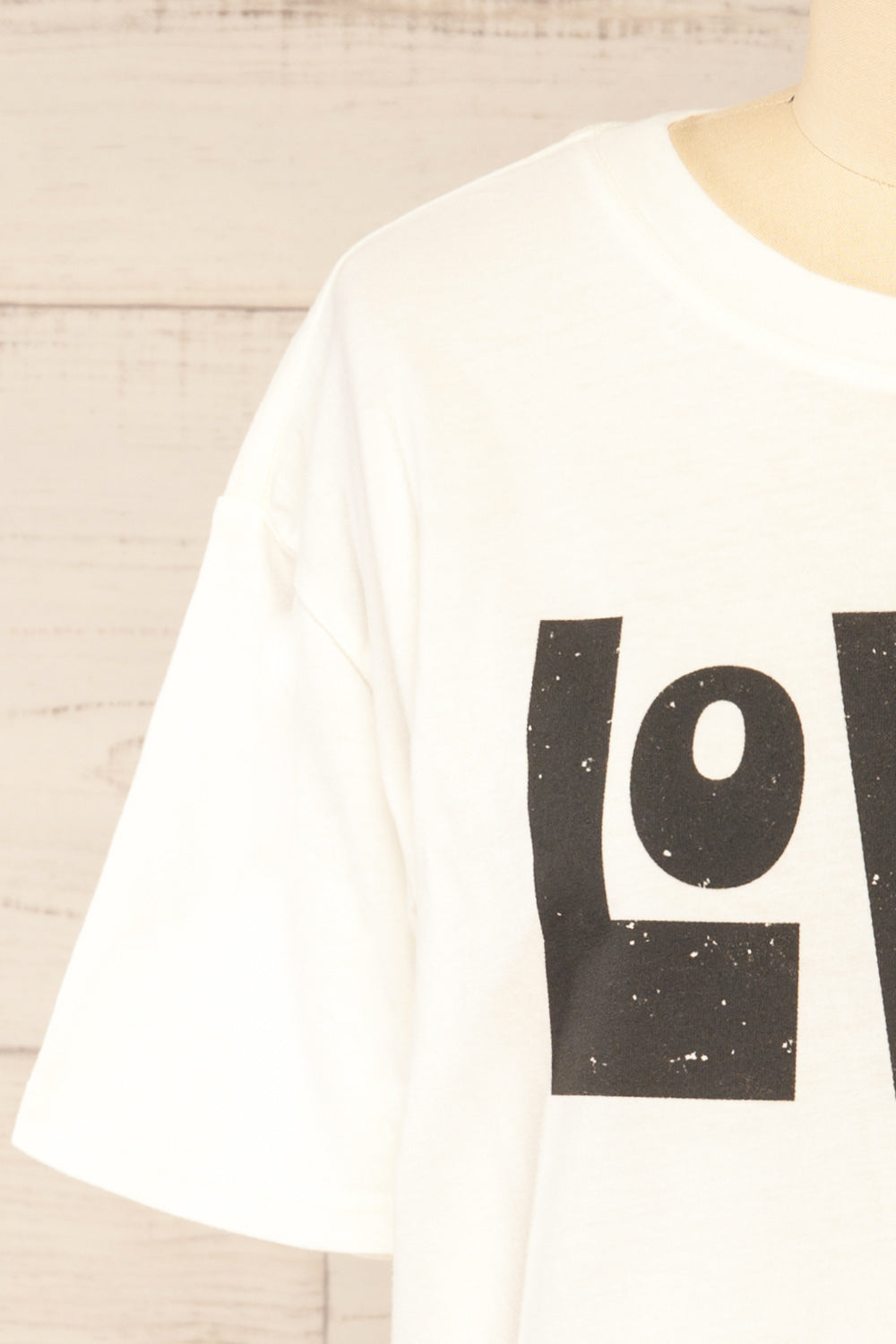 Spread the love with this adorable cotton t-shirt, featuring the word "LOVE" playfully printed on the front! Made from super comfy fabric and designed with a classic round collar, this tee is perfect for adding a touch of sweetness to your everyday look!