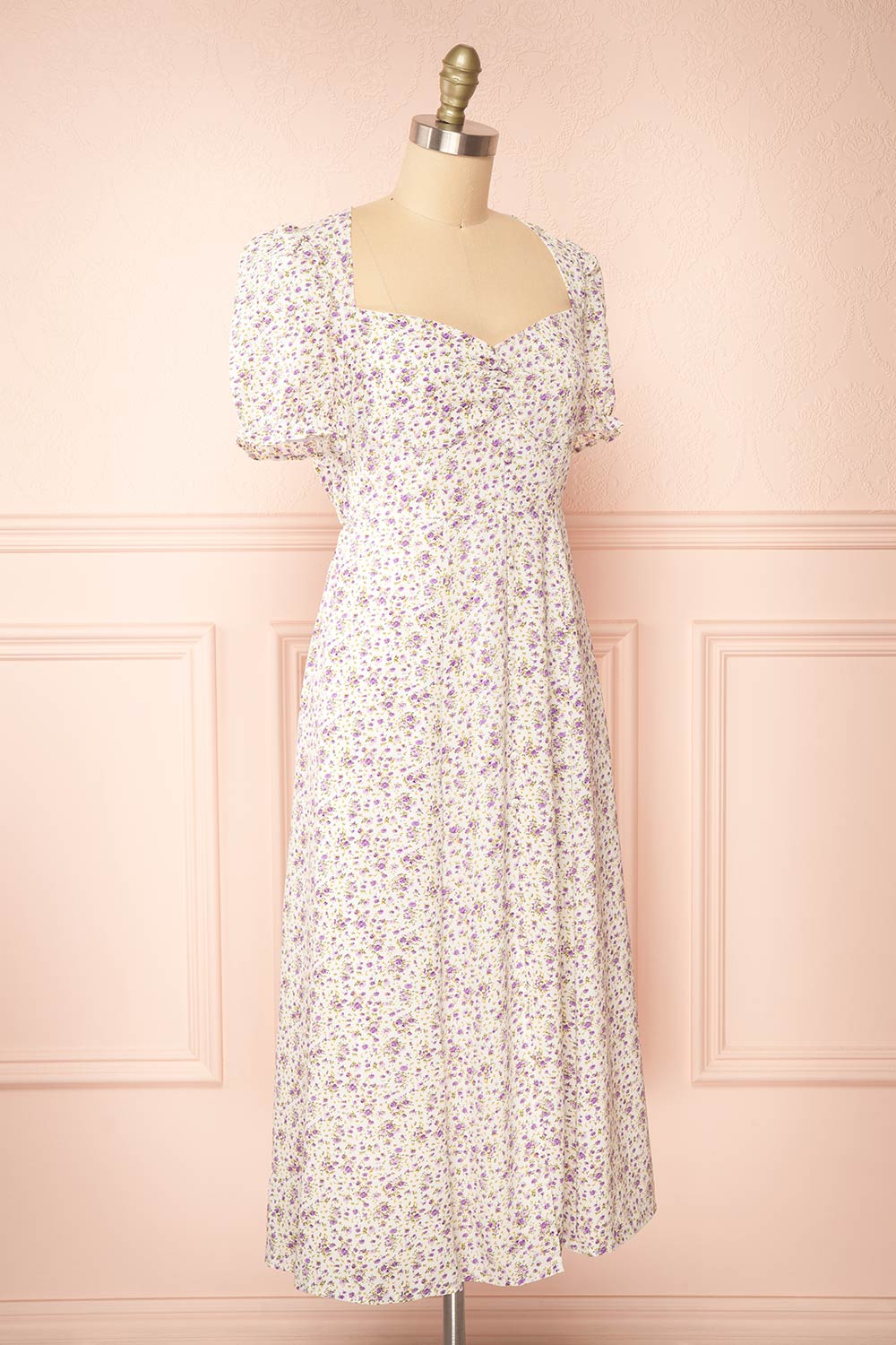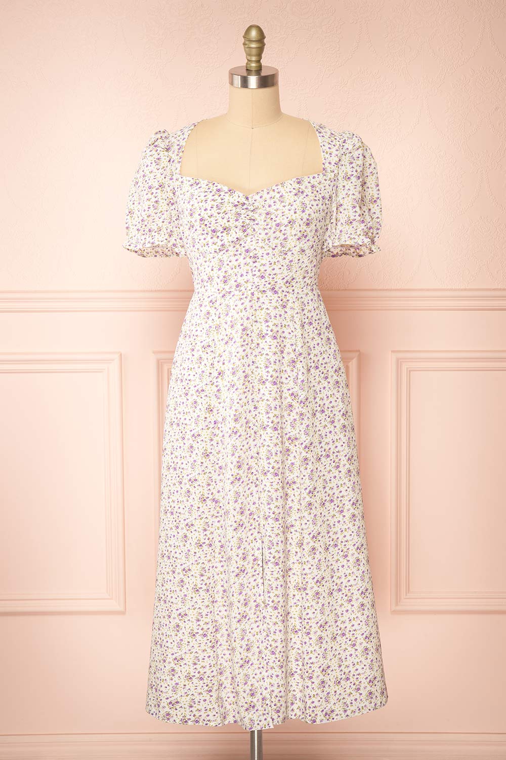 Sokka White | Floral Midi Dress w/ Short Sleeves