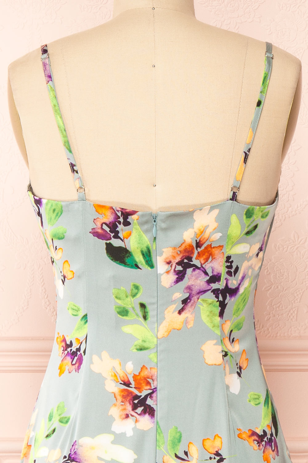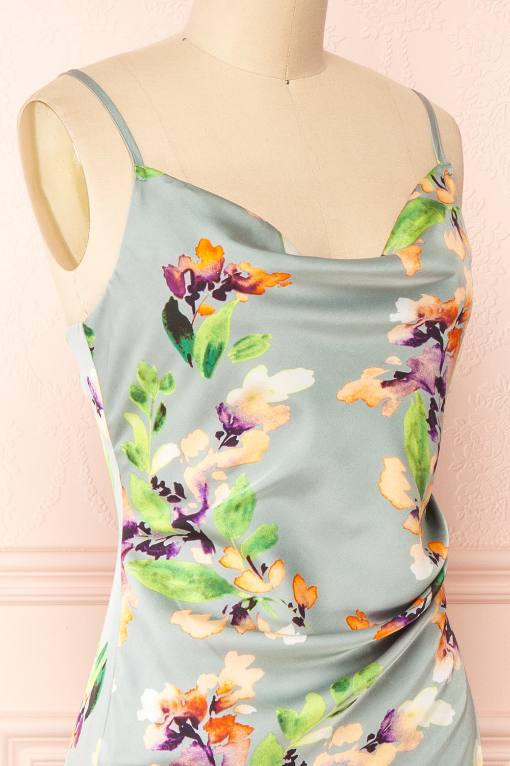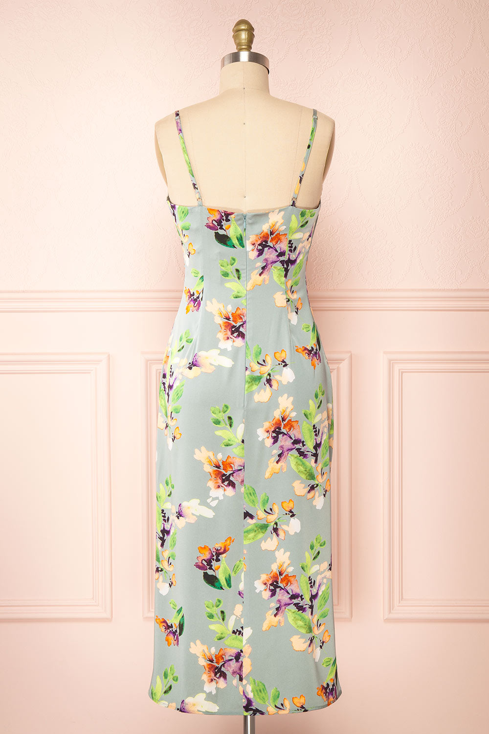 You will look simply beautiful in this floral midi dress! Its elegant satin fabric will make you stand out while its cowl neck and its side slit will add a seductive touch to your outfit. Its fitted cut will complement your lovely figure while offering you freedom in your movements. You'll be able to adjust the length of the piece thanks to its thin and adjustable straps.