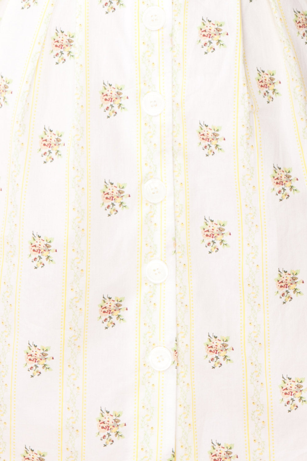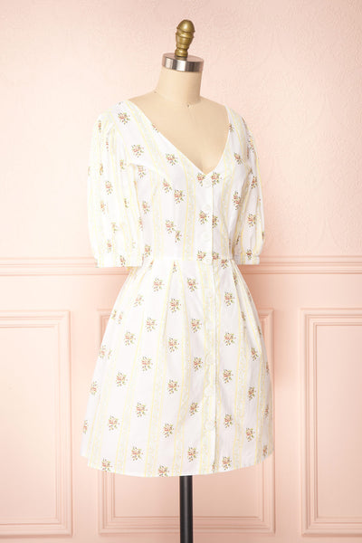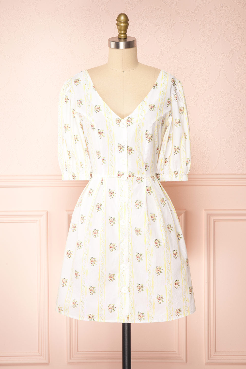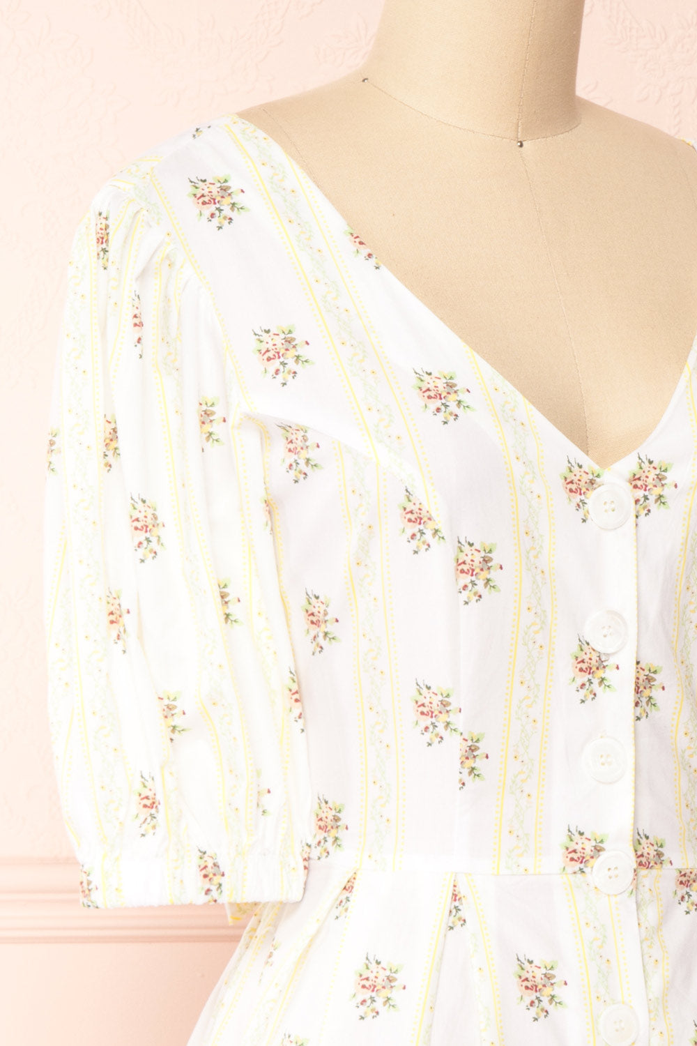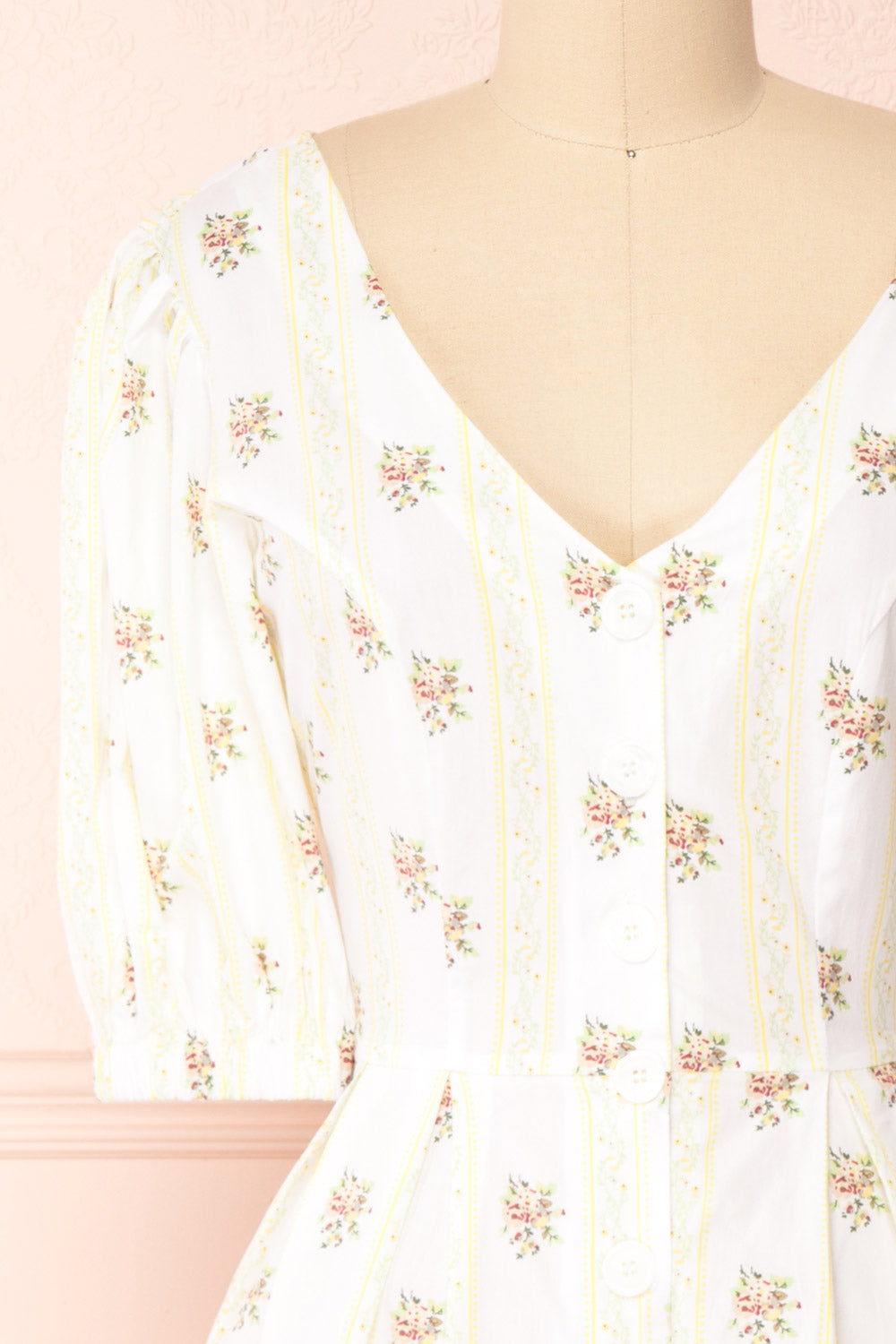 Srina | Floral Puffy Sleeves Buttoned Short Dress