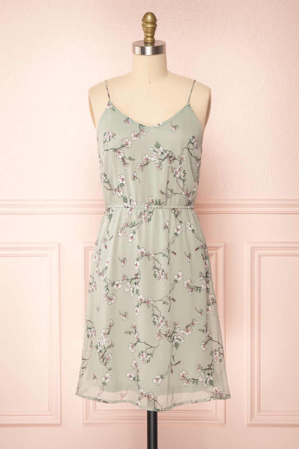 Stine Mint | Short Floral Dress w/ Thin Straps