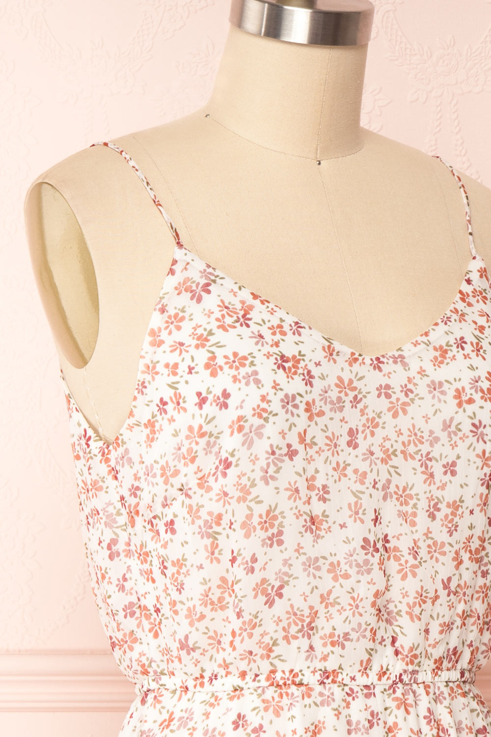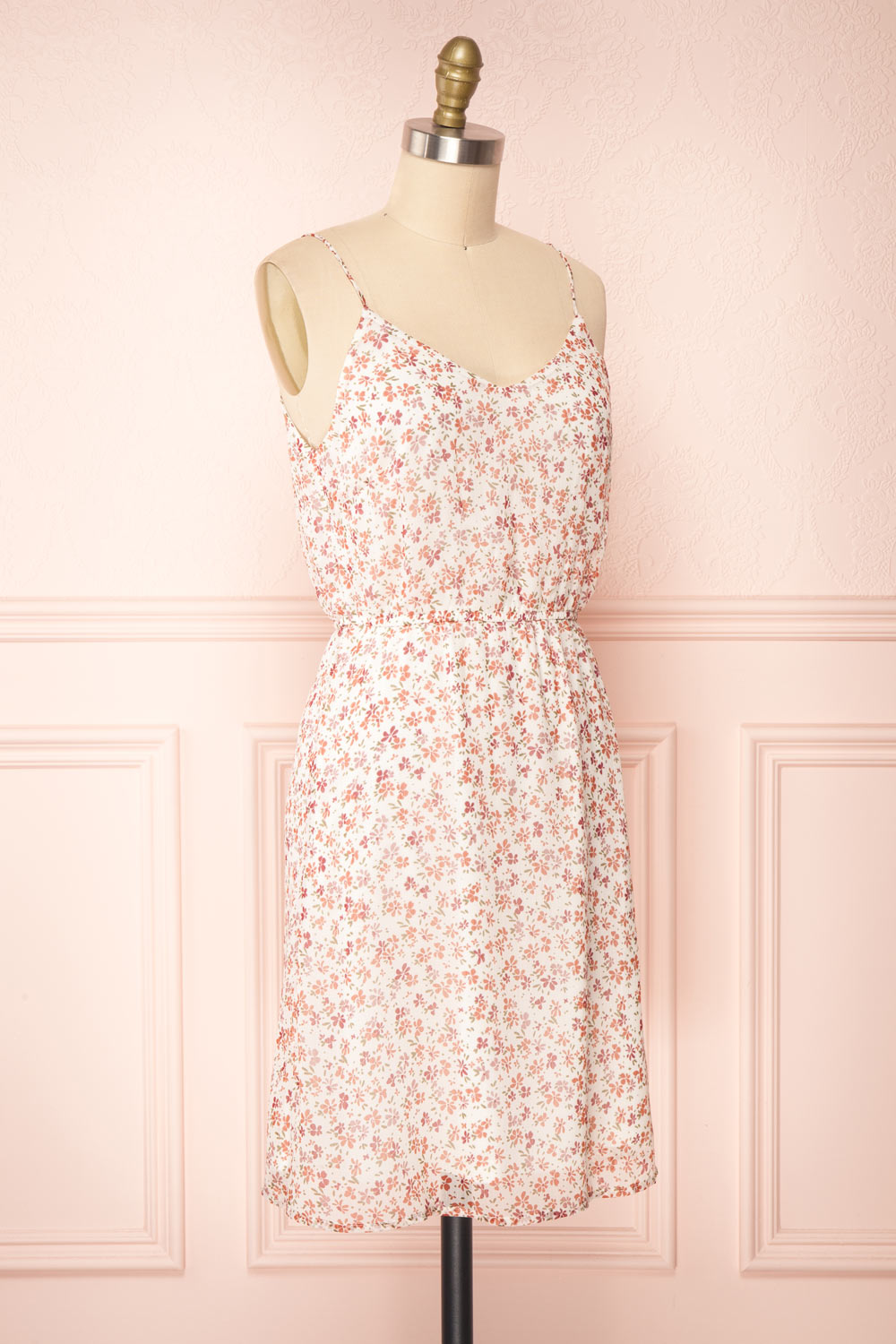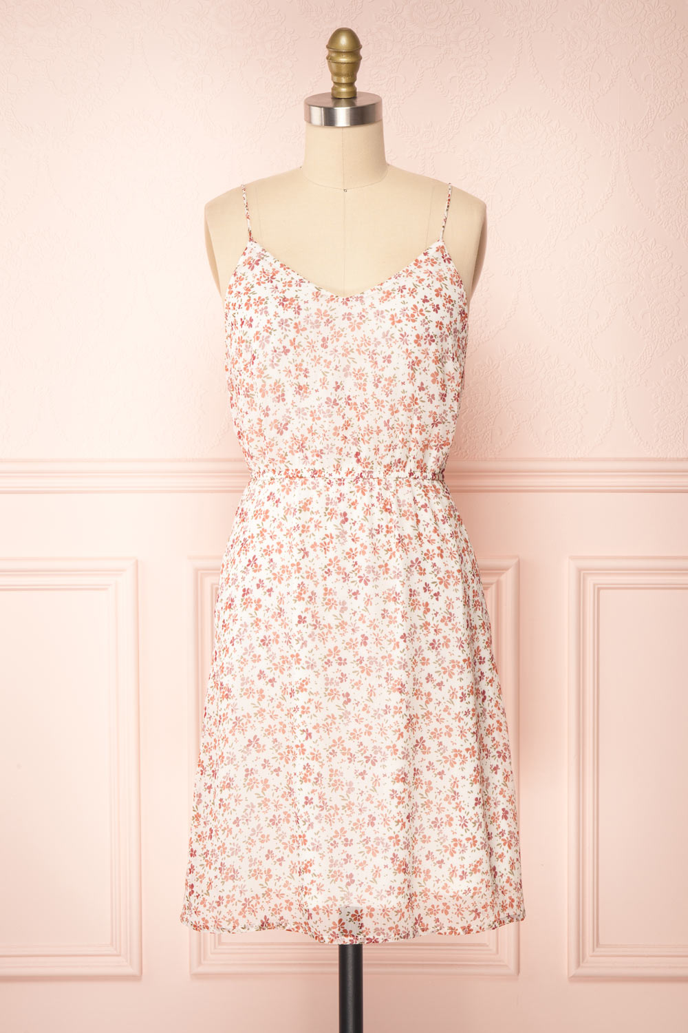 This beautiful short floral dress will offer you a charming look perfect for those hot summer days! Its light fabric and its soft lining will guarantee your comfort throughout your day, while its elastic waist will compliment your curves perfectly. Its v-neck and its thin straps will reveal your skin delicately.