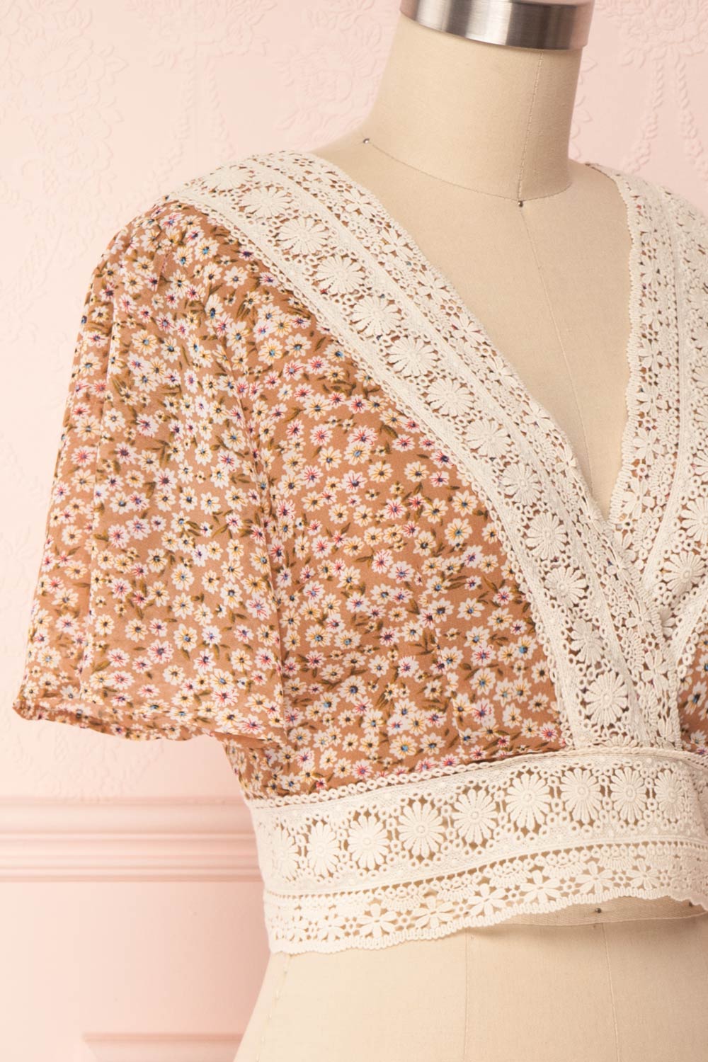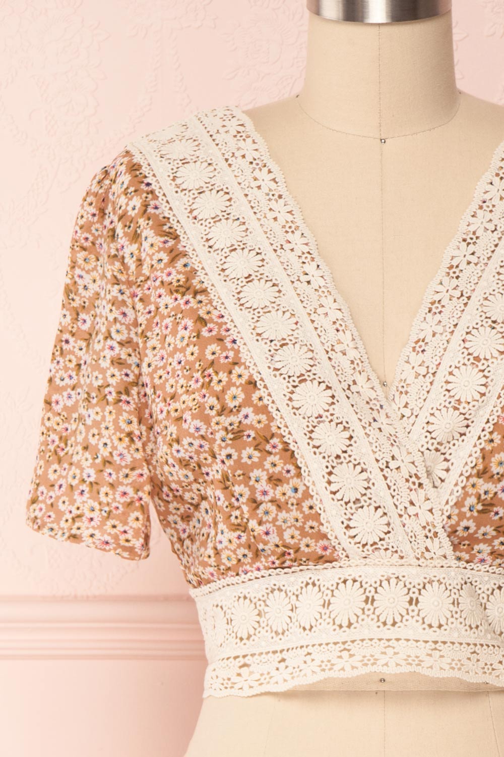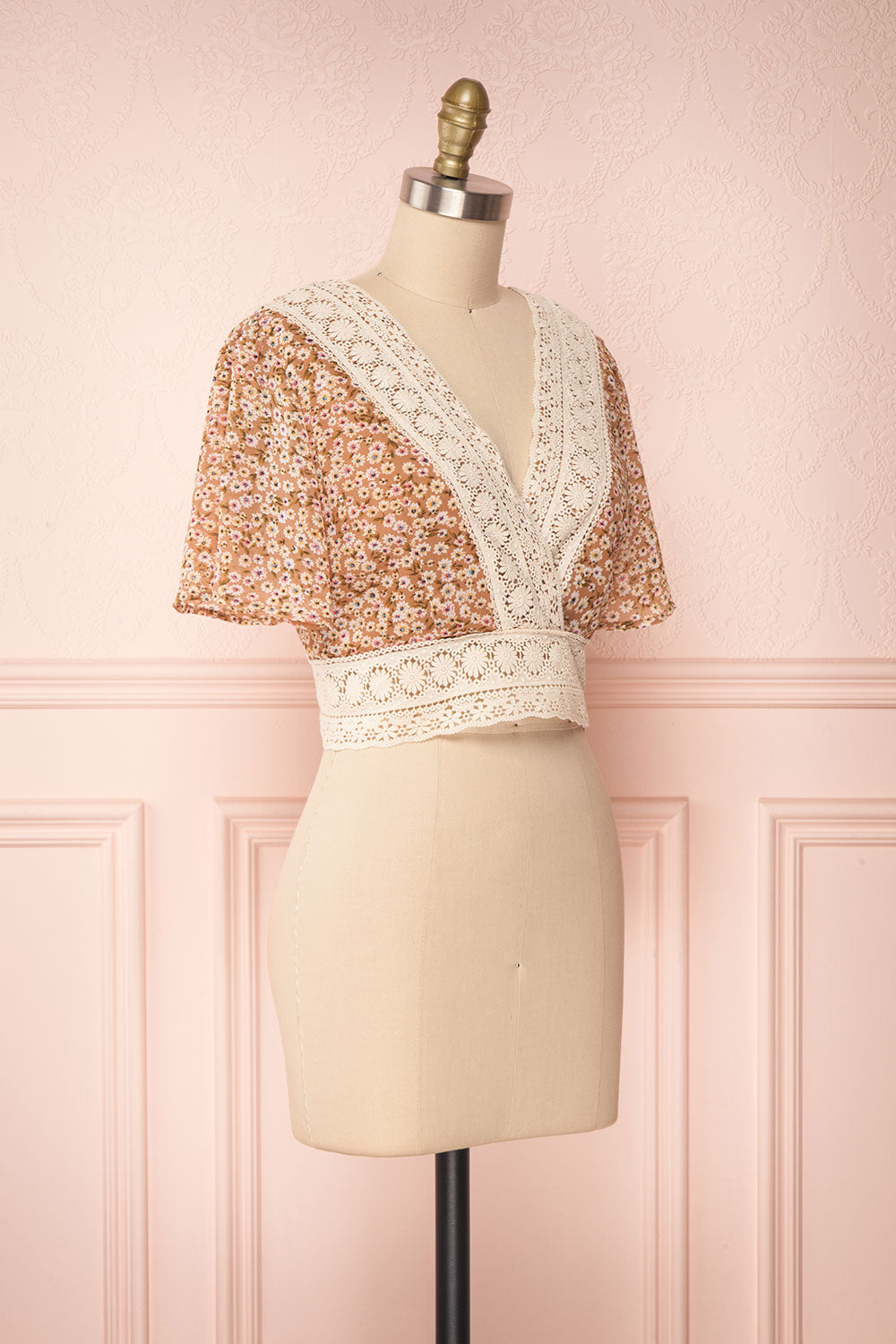 This crop top will add a bohemian quality to all your outfits! The openwork crocheted lace, the tied V back, and the wrap neckline will reveal your skin for a seductive touch. The lightweight lining and the lateral invisible zipper will be practical, while the translucent slitted sleeves offer an original flair!
