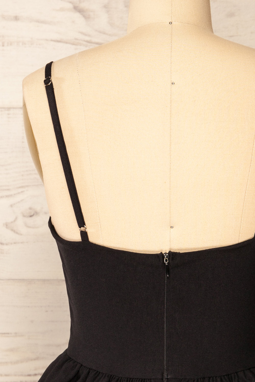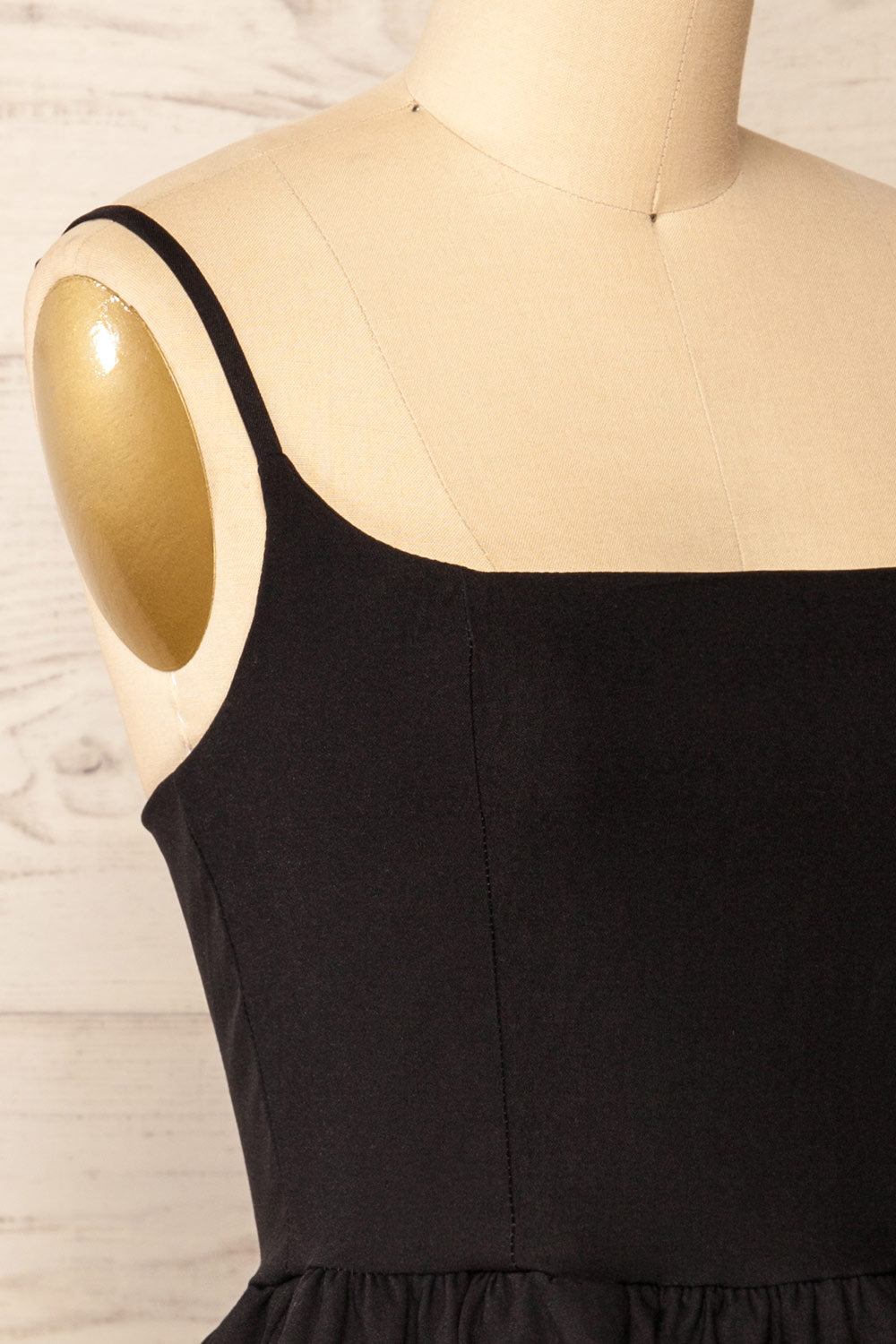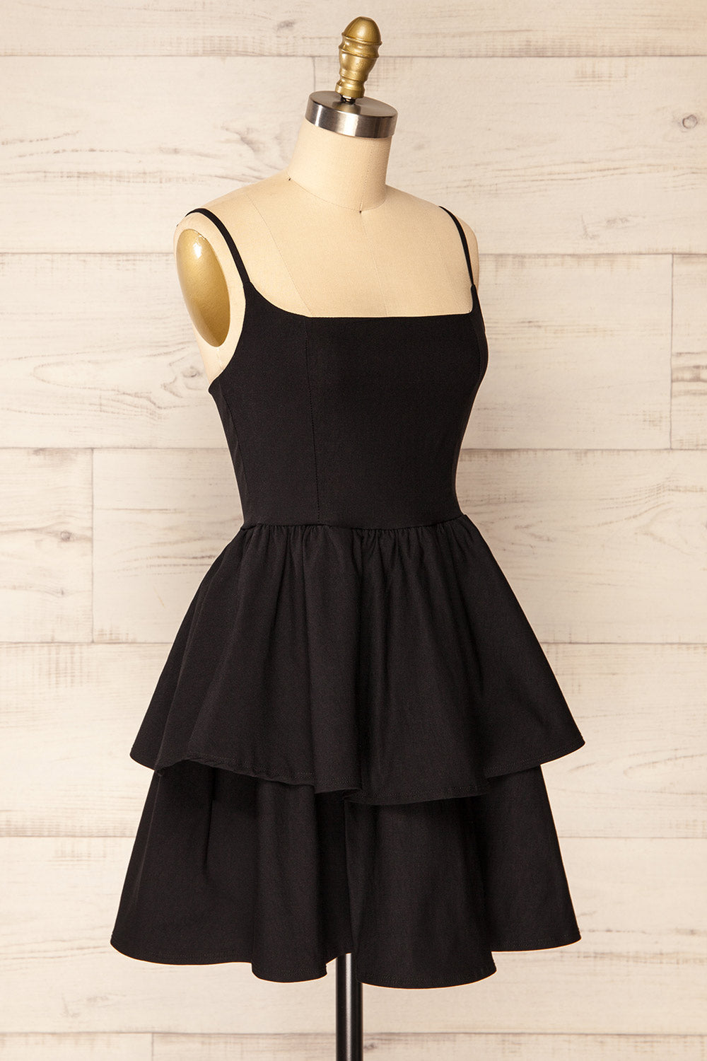 Steal the show in this gorgeous short, tiered dress! Its A-line cut will marvelously hug your curves and highlight your pretty figure. Its square collar will prove to be flattering while its stretchy fabric will offer you comfort and freedom of movement. The adjustable straps as well as the discreet zipper will be an optimal tool for a perfect fit!