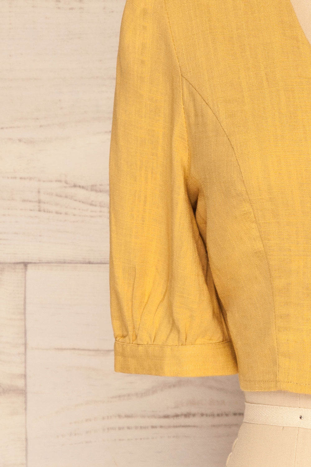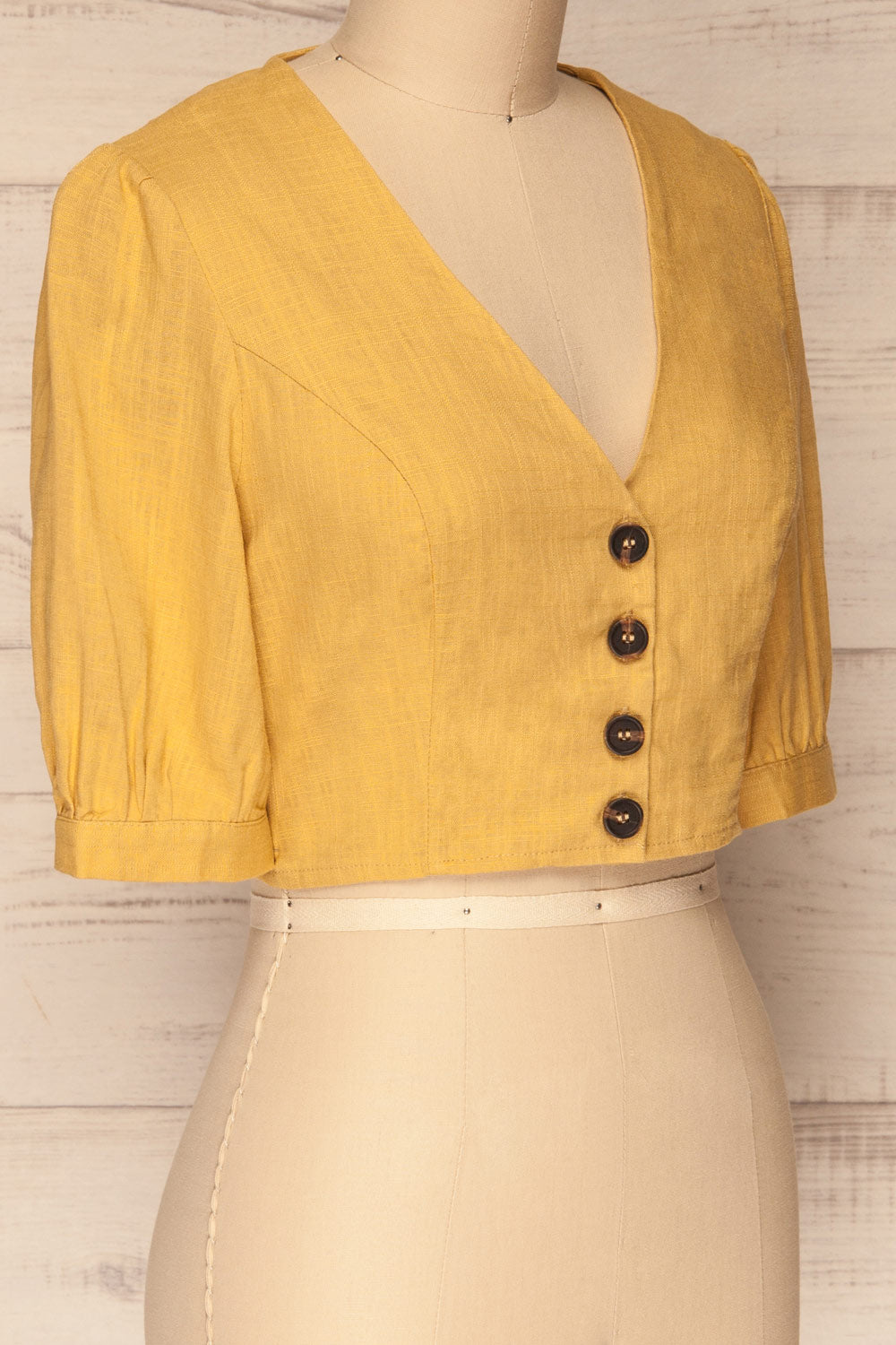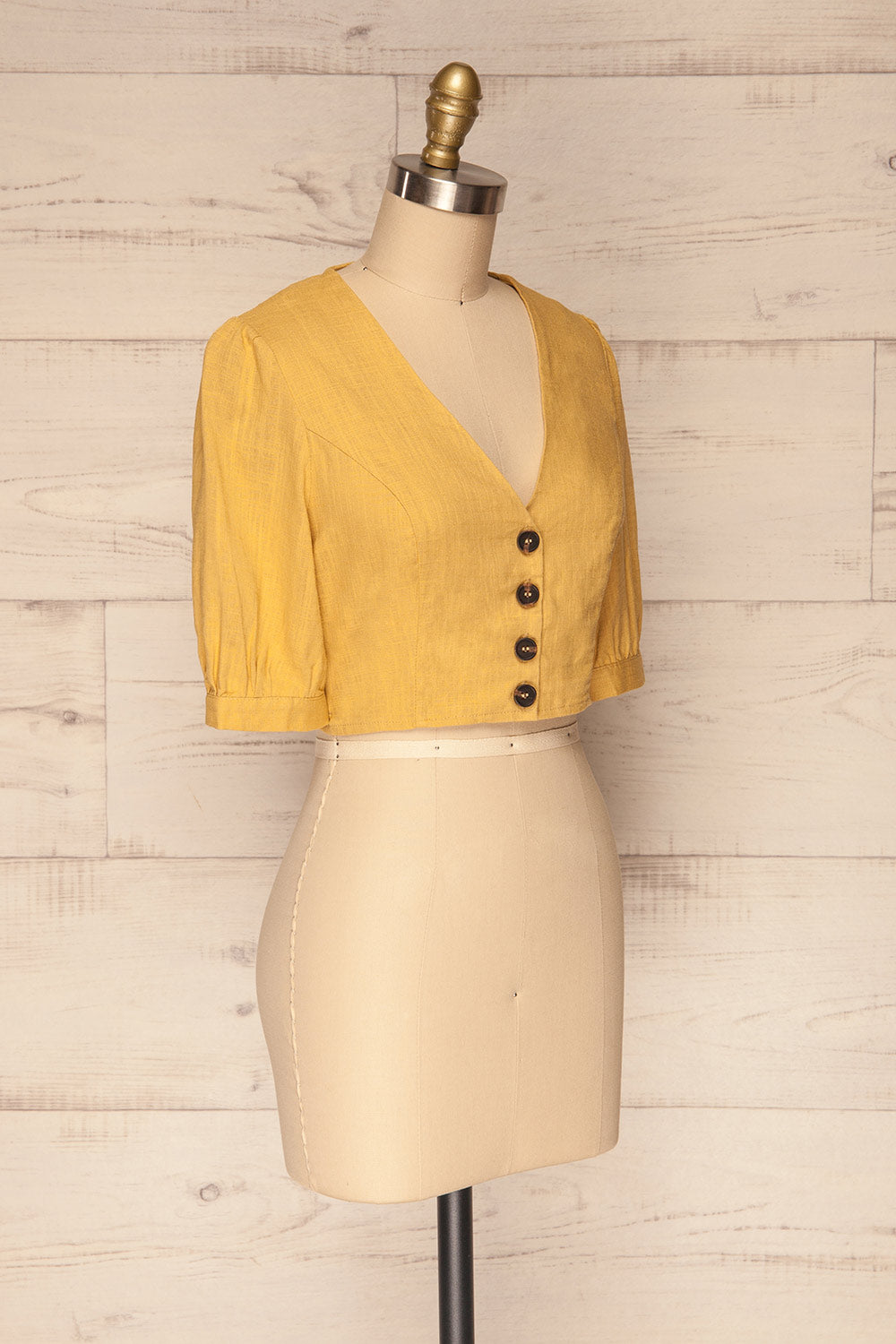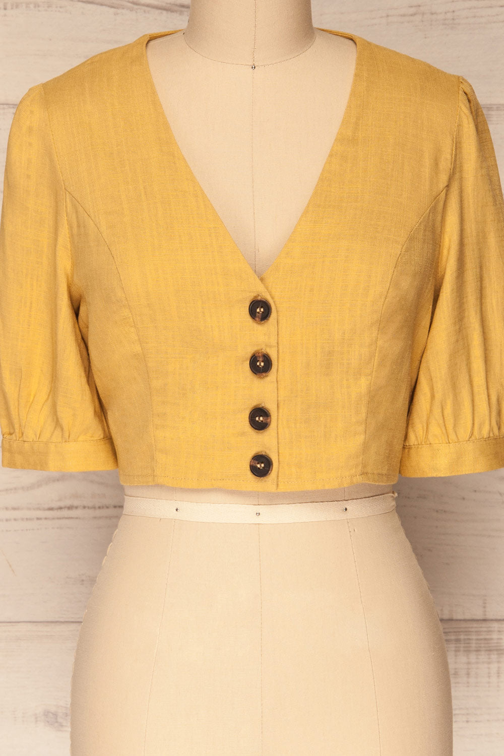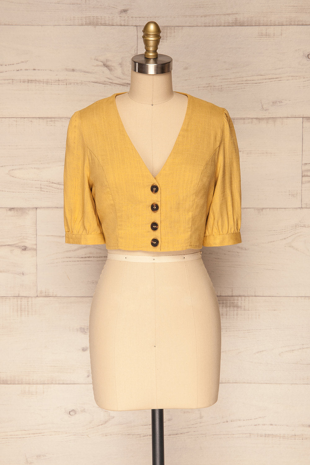 This pretty cropped blouse will be the trendiest item in your wardrobe! You'll appreciate its smooth weave and frontal buttons making it easy to wear. Pair it with high waisted jeans and espadrilles for a fabulously casual look!
