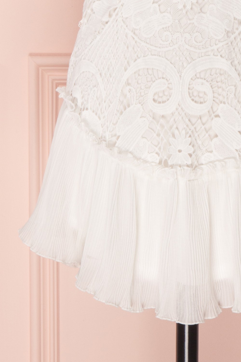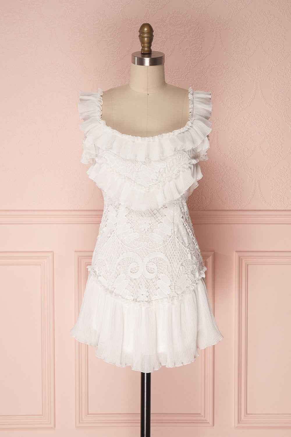 This lovely lace dress is sure to make you stand out on your special day! You'll love its smooth stretch material, which will show your figure off to advantage. The pleated ruffles add a flirty quality to the piece, as does the off-shoulder neckline. Slip it on for a stellar costume change, just in time for a night of dancing!