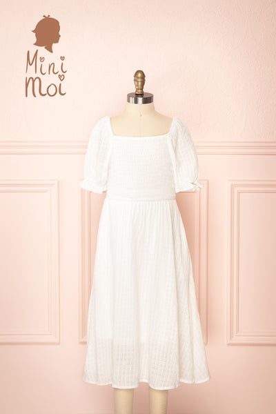 Undume Mini | White Midi Dress w/ Square Neckline