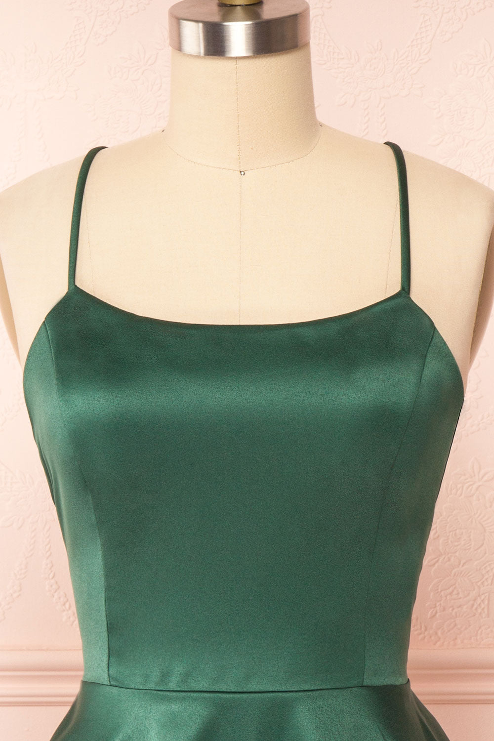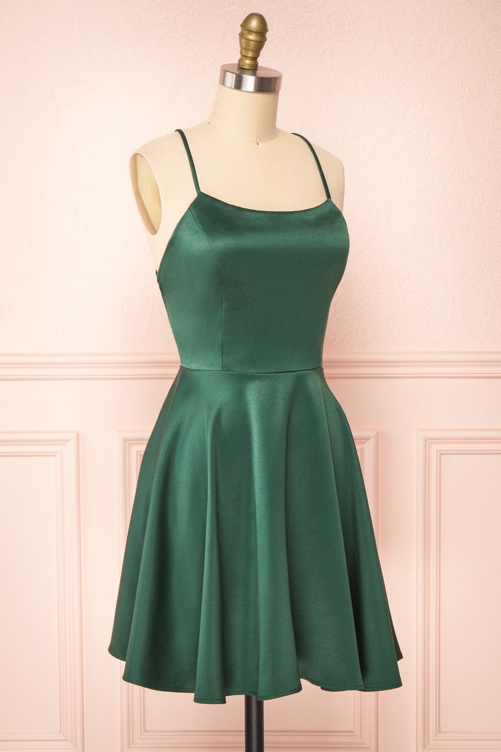 This satin dress will make you the star of the evening! Its elegant and minimalist allure will give you a polished look for any occasion. Its smooth comfortable fabric and a-line cut will hug your curves beautifully while highlighting your charming silhouette. The lace-up open back will reveal your skin in an alluring way. You will certainly appreciate the support of its built-in bra.