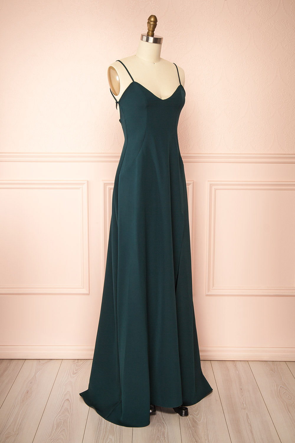 This stunning maxi dress features a comfortable A-line fit, a flattering V neckline with adjustable thin straps, and an alluring side slit. The open back design with hidden loops in the lining allows for versatile styling options, along with an invisible back zipper for easy wear. You won't regret adding this chic and sophisticated piece to your formalwear wardrobe!