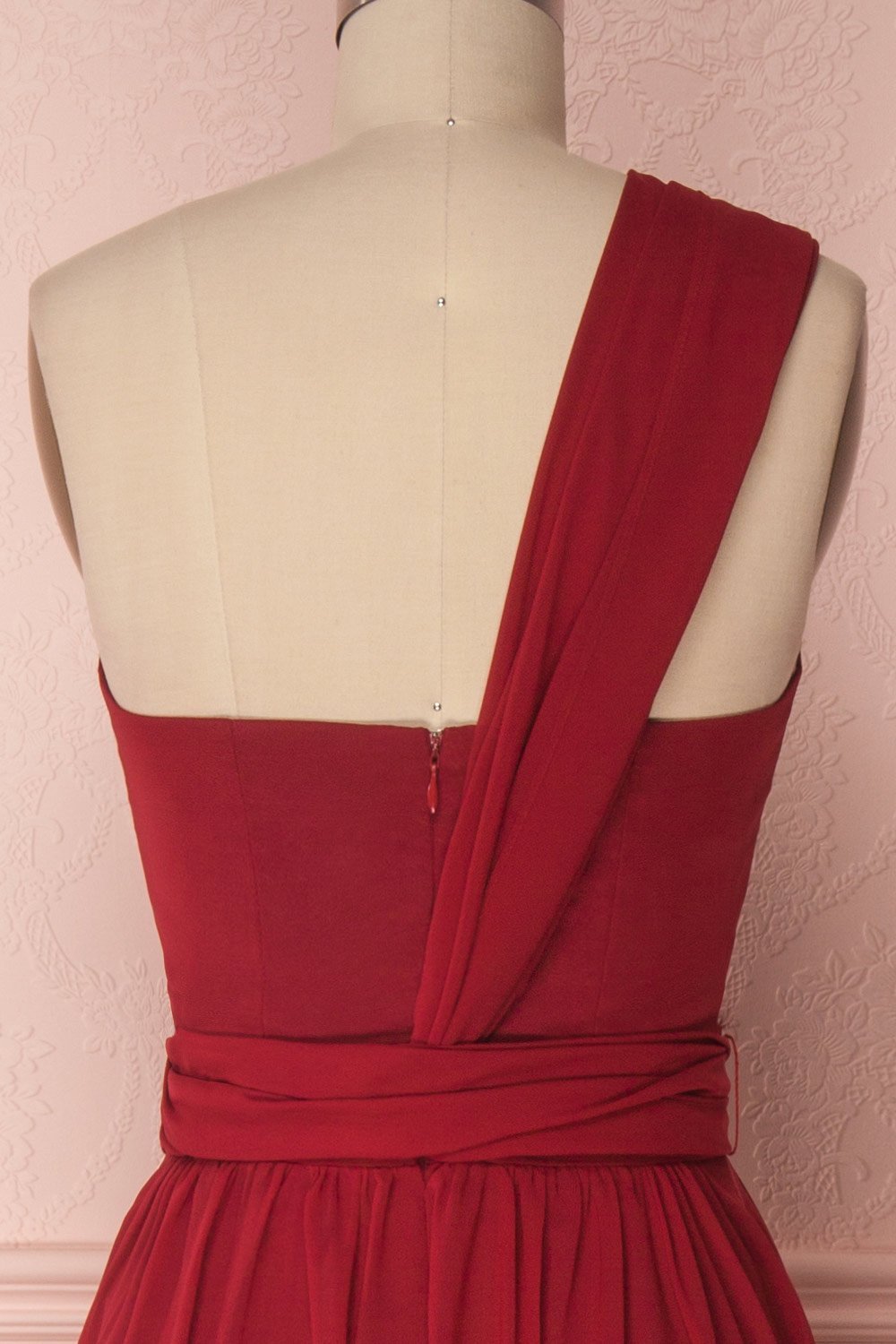 Behold the dress of your dreams! The draped chiffon bustier comes equipped with padded cups and boning, ensuring the necessary support. The chiffon skirt falls graciously from the waist, and hides a luxurious, silky lining. The zipper in back is practical, as are the long straps that you can use to create a multitude of styles - the options are endless!