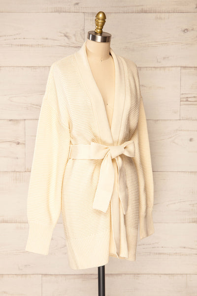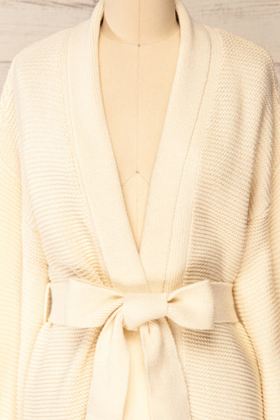 Yvelain Beige | Long Knit Cardigan w/ Belt