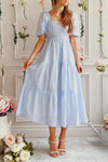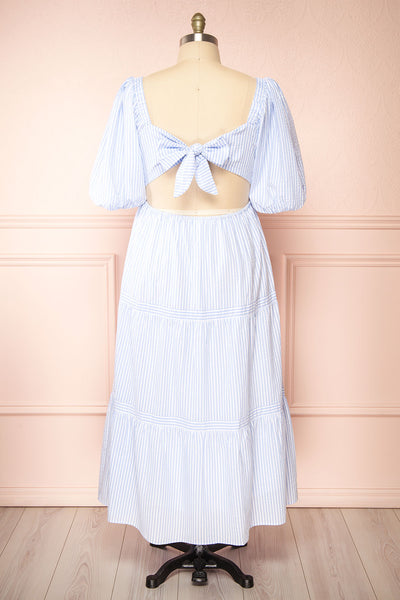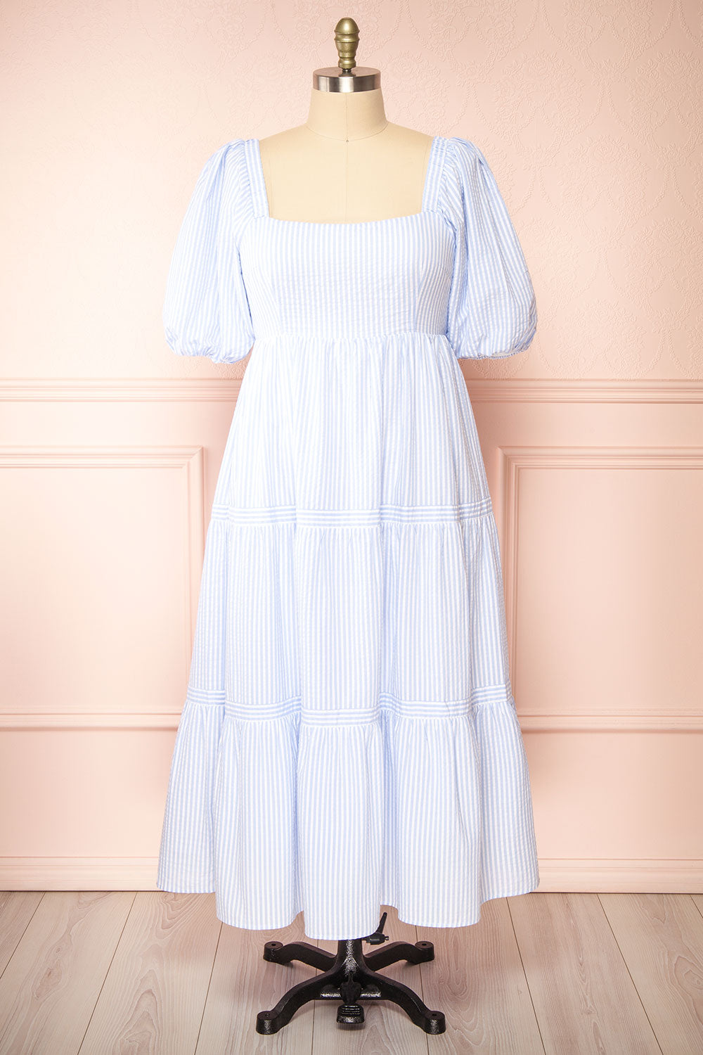 Zahia | Blue Striped Maxi Dress w/ Puffy Sleeves