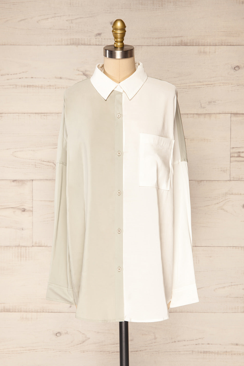 Zarho Sage | Two-tone Long-sleeve Blouse